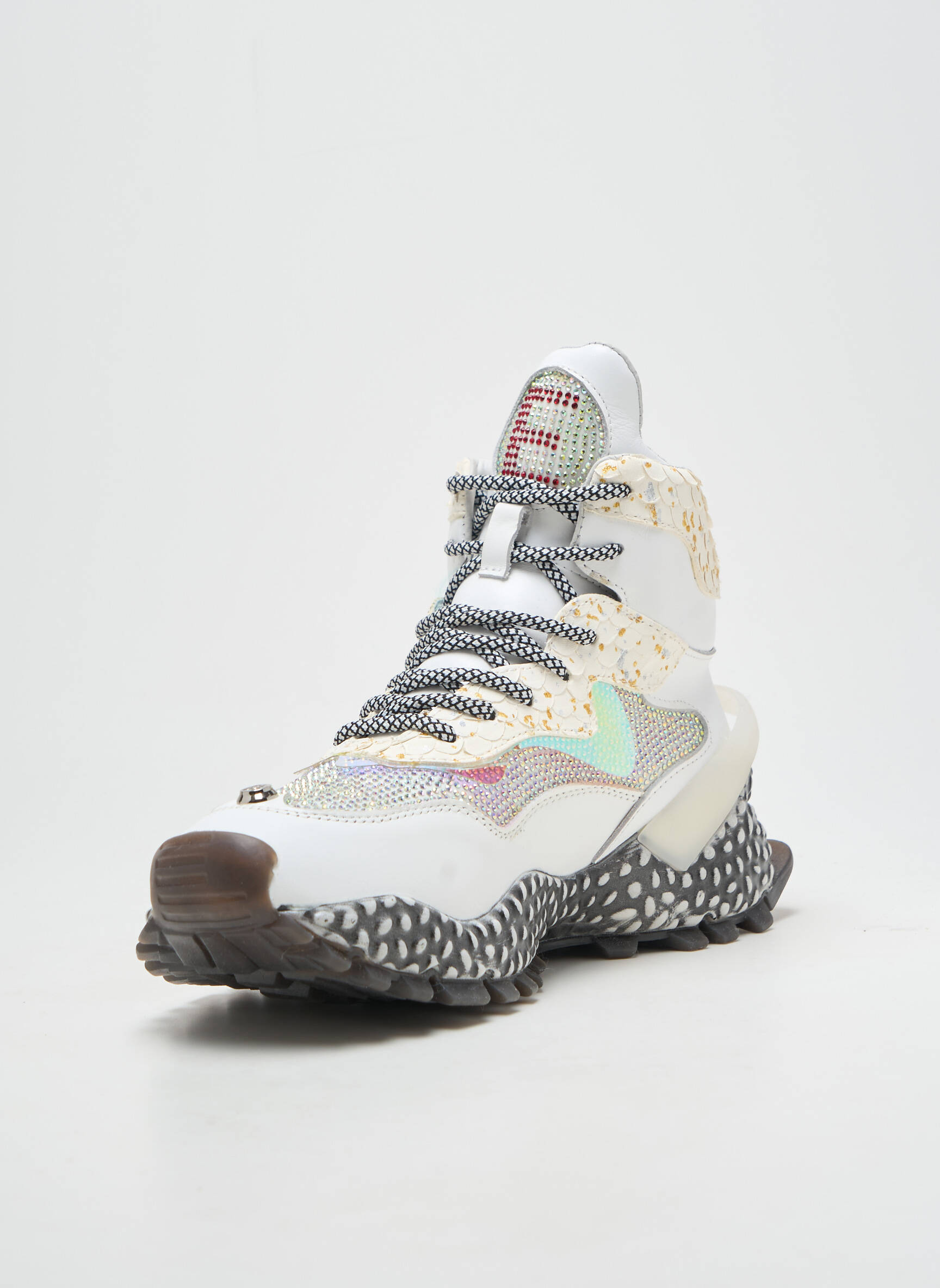 Profitez d’un vrai bon plan avec cette paire de baskets EXÉ pour femme, qui séduit par son style futuriste et sa semelle surdimensionnée à motifs contrastés rappelant l’énergie urbaine. Sa tige blanche relevée d’empiècements irisés capte la lumière à chaque pas, tandis que les détails dorés et les touches de couleurs pastel ajoutent une note tendance et originale pour réveiller toutes vos tenues sans vous ruiner. C’est l’occasion idéale de s’offrir une basket unique et stylée à prix mini, pour un look affirmé sans compromis sur l’économie.