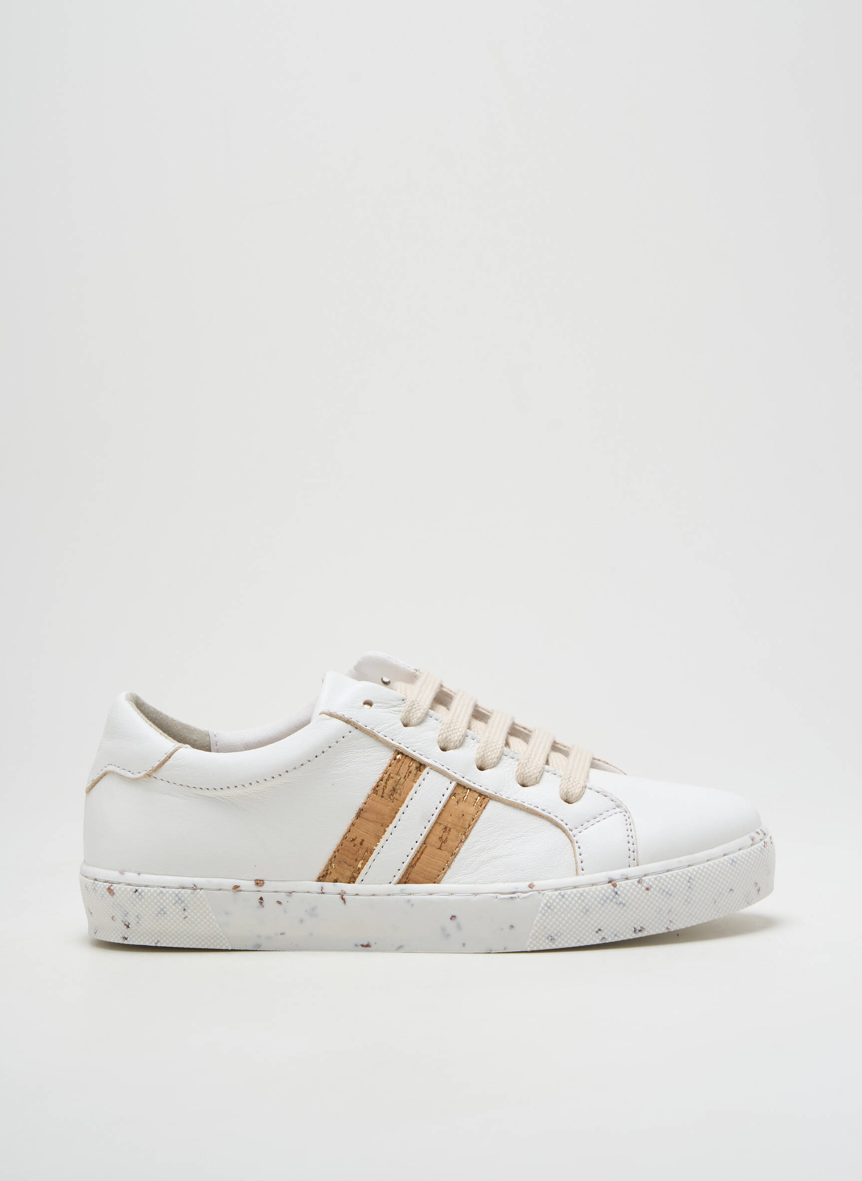 Craquez pour cette paire de baskets Georgia Rose pour femme et profitez d’un bon plan mode tout en maîtrisant votre budget. Son design blanc épuré est sublimé par des bandes latérales coloris liège et des lacets assortis, apportant une touche tendance et naturelle à toutes vos tenues. La semelle épaisse mouchetée donne du caractère à la chaussure tout en assurant un confort optimal au quotidien. C’est l’alternative idéale pour renouveler votre collection de sneakers avec style sans vous ruiner.