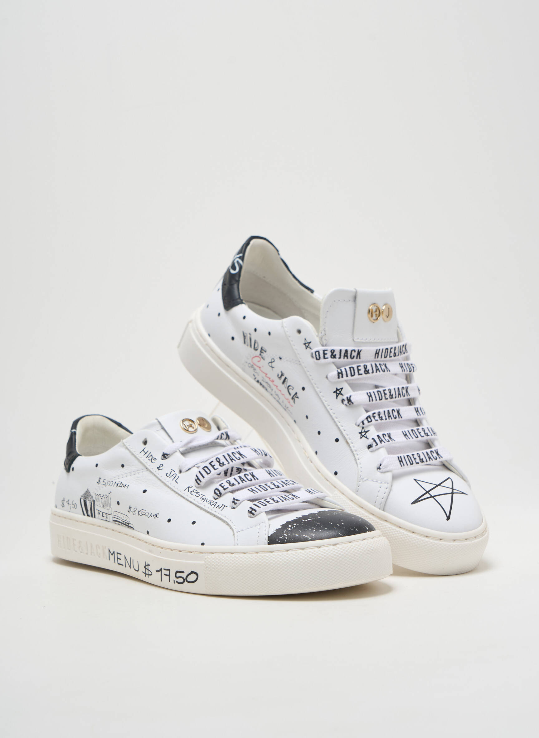 Craquez pour ces baskets HIDE&JACK pour femme, un bon plan à ne pas manquer pour allier style urbain et économies sur votre budget mode. Avec leur design blanc rehaussé d’imprimés noirs et de détails graphiques ultra tendance, ces baskets affichent une allure moderne et originale, parfaite pour réveiller toutes vos tenues du quotidien. Le contraste des motifs et les éléments dorés leur donnent une touche audacieuse, tout en restant faciles à porter. Profitez de ce prix mini pour vous offrir une paire unique qui attire tous les regards sans compromis sur la qualité ni sur l’élégance.