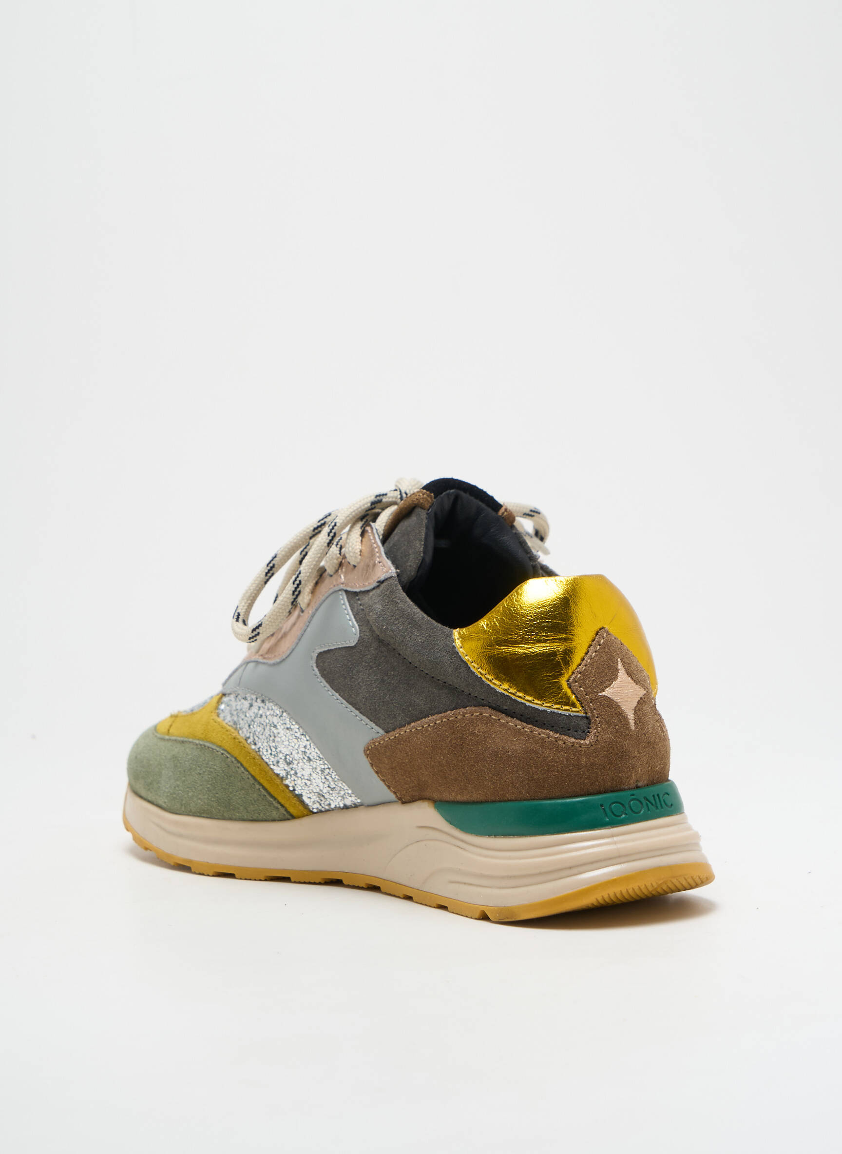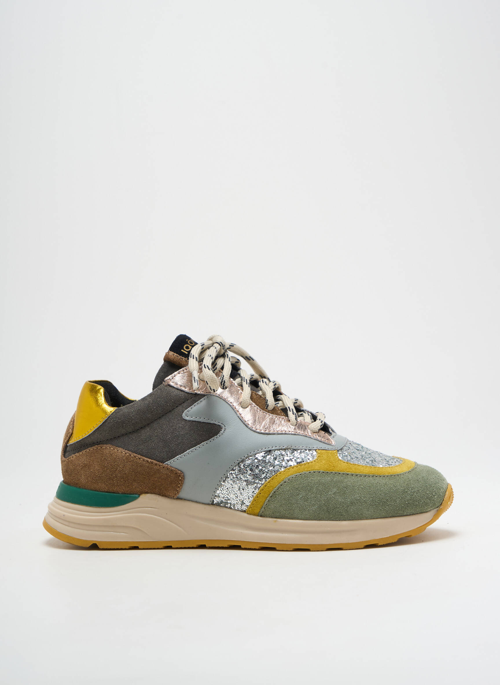 Craquez pour ces baskets IQÔNIC pour femme à prix irrésistible, qui marient style urbain et allure tendance grâce à un subtil mélange de matières et de couleurs comme le vert, le jaune, l’argenté pailleté et des touches de marron. Ce modèle affiche une silhouette moderne, une semelle confortable ainsi que des détails contrastés ultra mode, parfaits pour apporter une touche originale et lumineuse à toutes vos tenues, tout en profitant d’un bon plan exclusif pour renouveler votre dressing sans vous ruiner.