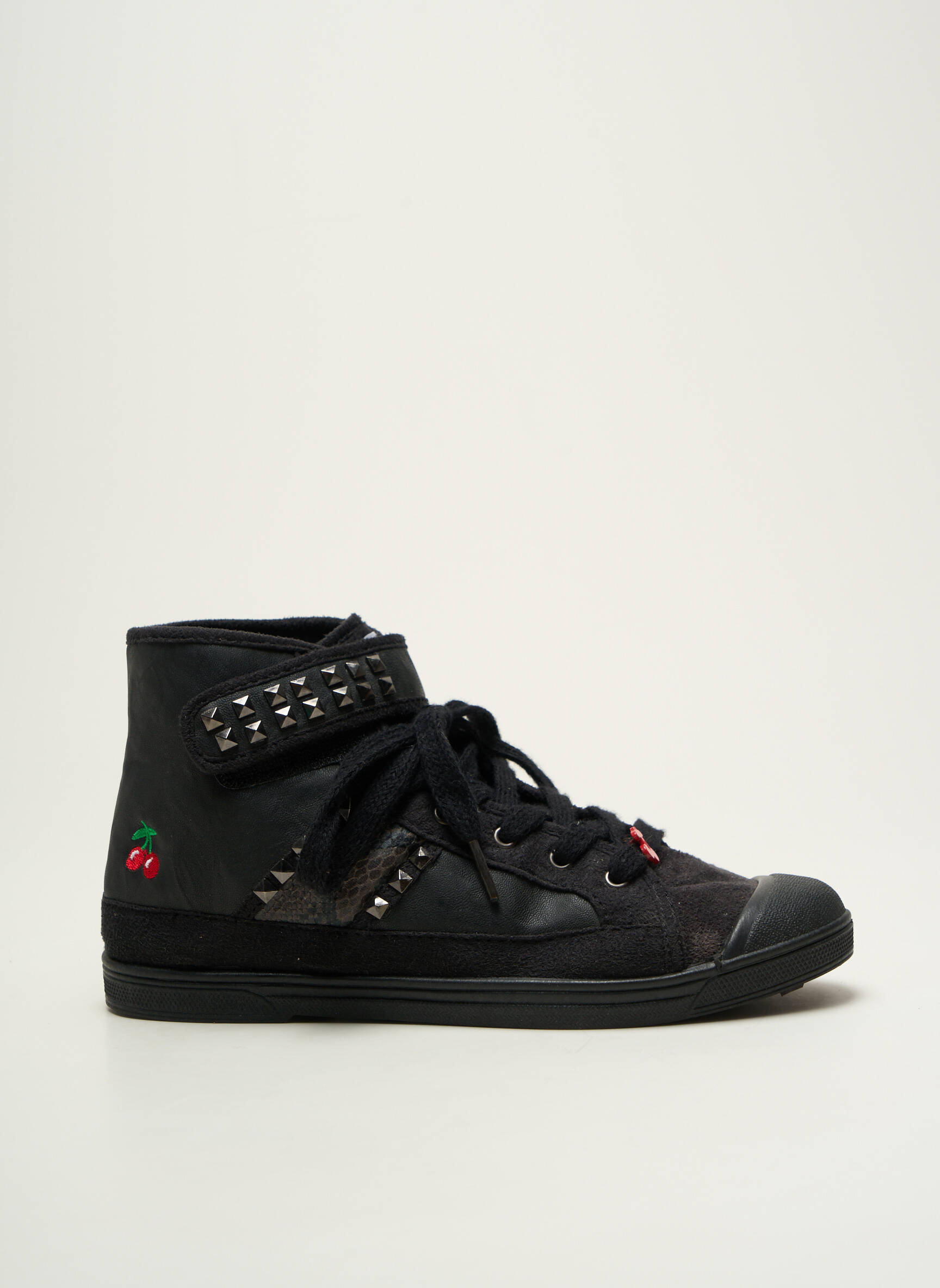 Profitez d’un véritable bon plan avec cette basket montante pour femme signée Le Temps des Cerises, un modèle tendance qui allie style urbain et petit prix. Sa couleur noire intemporelle est rehaussée par des clous métalliques sur la bride et par les célèbres petites cerises brodées à l’arrière, apportant une touche d’originalité et de caractère à toutes vos tenues. L’aspect décontracté et moderne de cette basket s’accordera aussi bien avec un jean qu’avec une robe pour un look casual à prix malin.