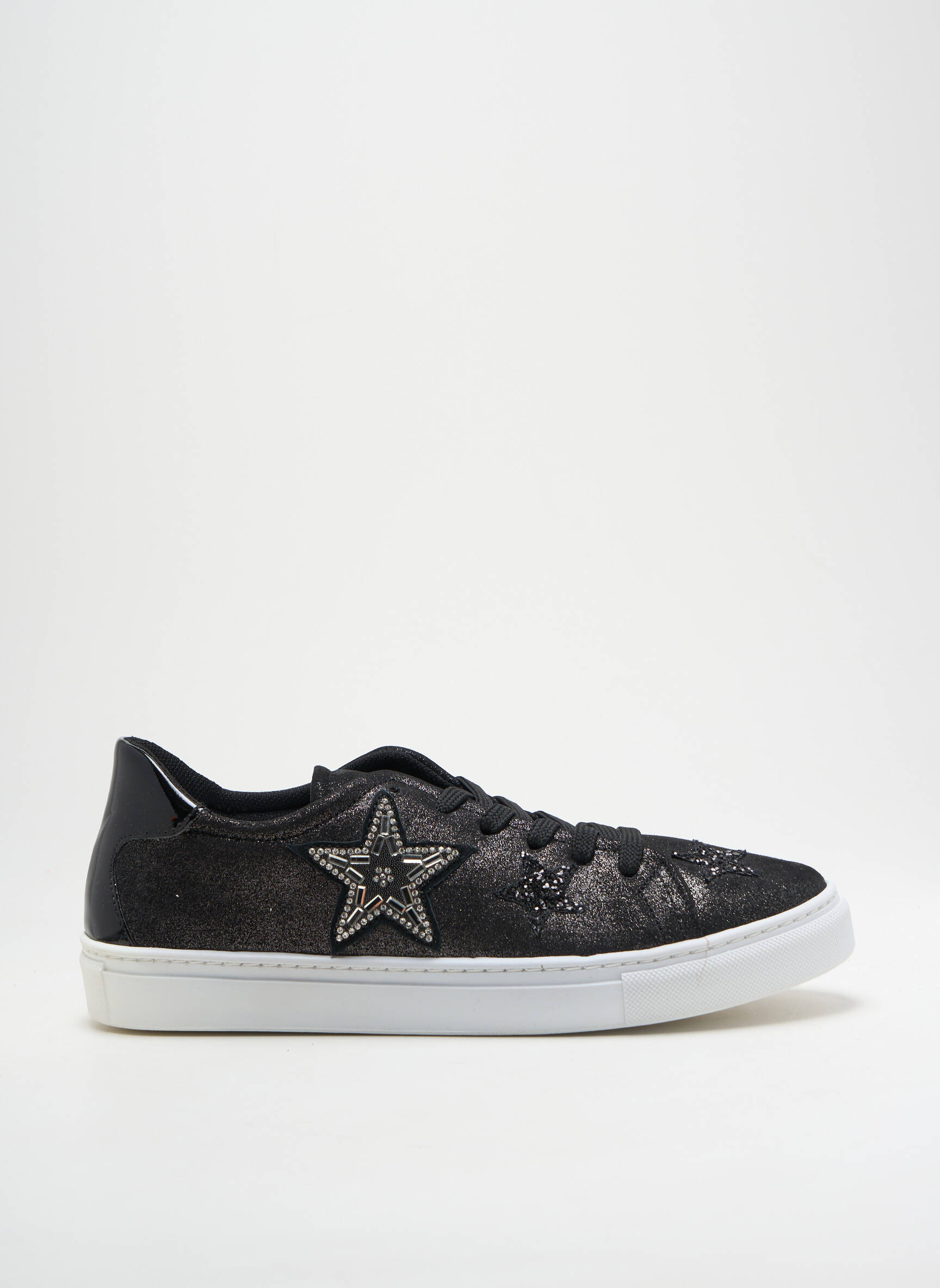 Craquez pour ces baskets LOLLIPOPS à prix malin, idéales pour donner une touche tendance et originale à vos tenues sans vous ruiner. Leur finition noire pailletée et l'emblématique étoile ornée de strass sur le côté apportent une note chic et féminine, tandis que la semelle blanche contrastée assure un look moderne et confortable au quotidien. C’est l’opportunité parfaite de s’offrir une paire de baskets stylée et lumineuse à petit prix !