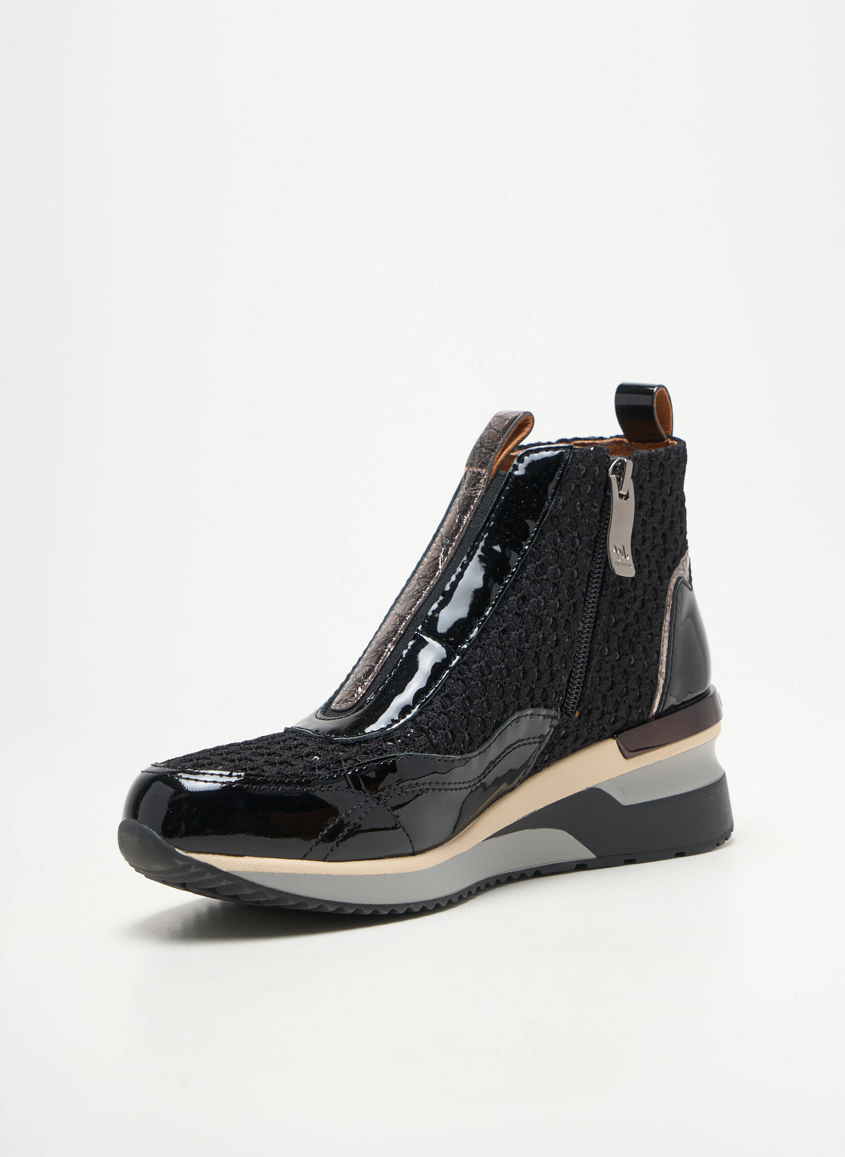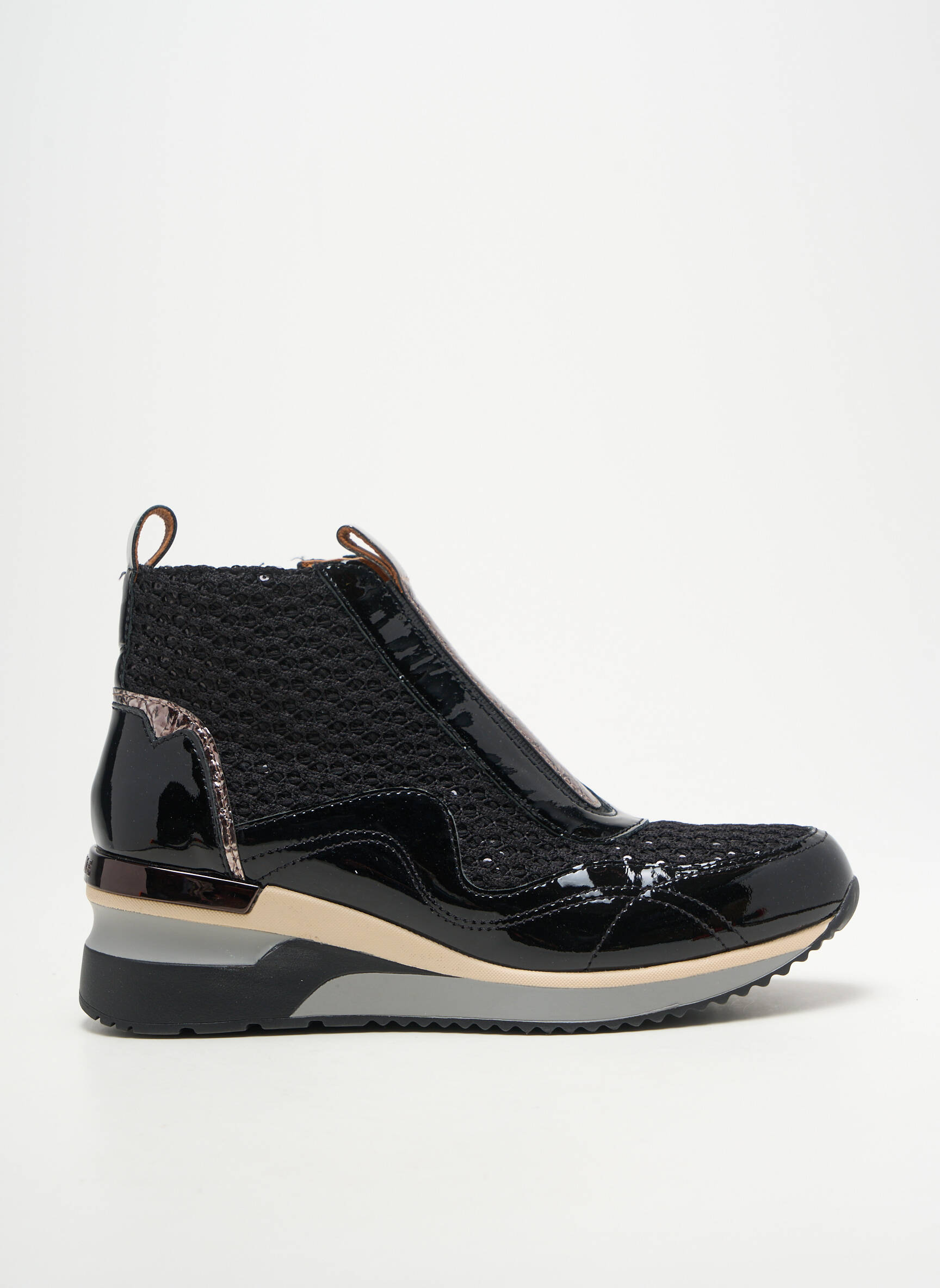 Craquez pour ces baskets femme MAM'ZELLE alliant élégance et modernité à prix mini, parfaites pour celles qui veulent se faire plaisir sans se ruiner. Leur tige mi-montante en textile tressé rehaussée de détails vernis noirs leur donne un look unique et raffiné, tandis que la semelle épaisse bicolore apporte une touche urbaine et contemporaine idéale pour sublimer toutes vos tenues en toute légèreté, tout en profitant d'un petit prix grâce à ce bon plan de déstockage.