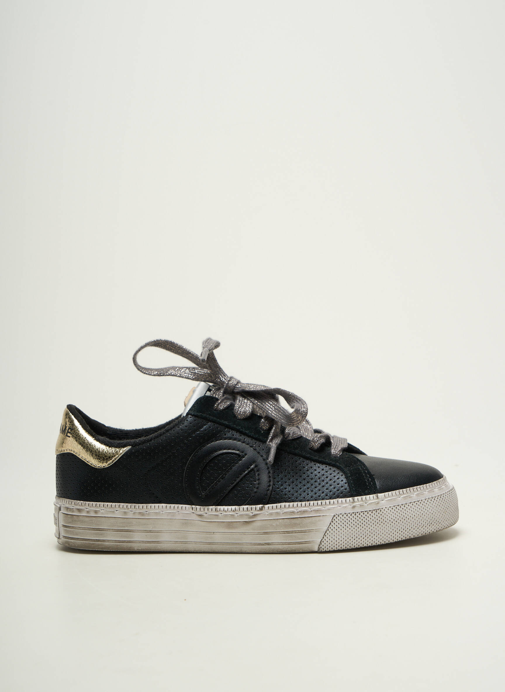 Profitez d’une opportunité à ne pas manquer avec ces baskets NO NAME pour femme, un modèle tendance qui associe une ligne moderne à des finitions originales. Le contraste chic entre le cuir noir élégant, les lacets gris et la note dorée brillante au talon apporte une touche de style qui dynamise toutes vos tenues. Leur semelle épaisse légèrement patinée vous offre confort et allure urbaine, parfaites pour adopter le look casual sans vous ruiner. C’est le bon plan mode malin pour allier qualité et petits prix, sans compromis sur le style.