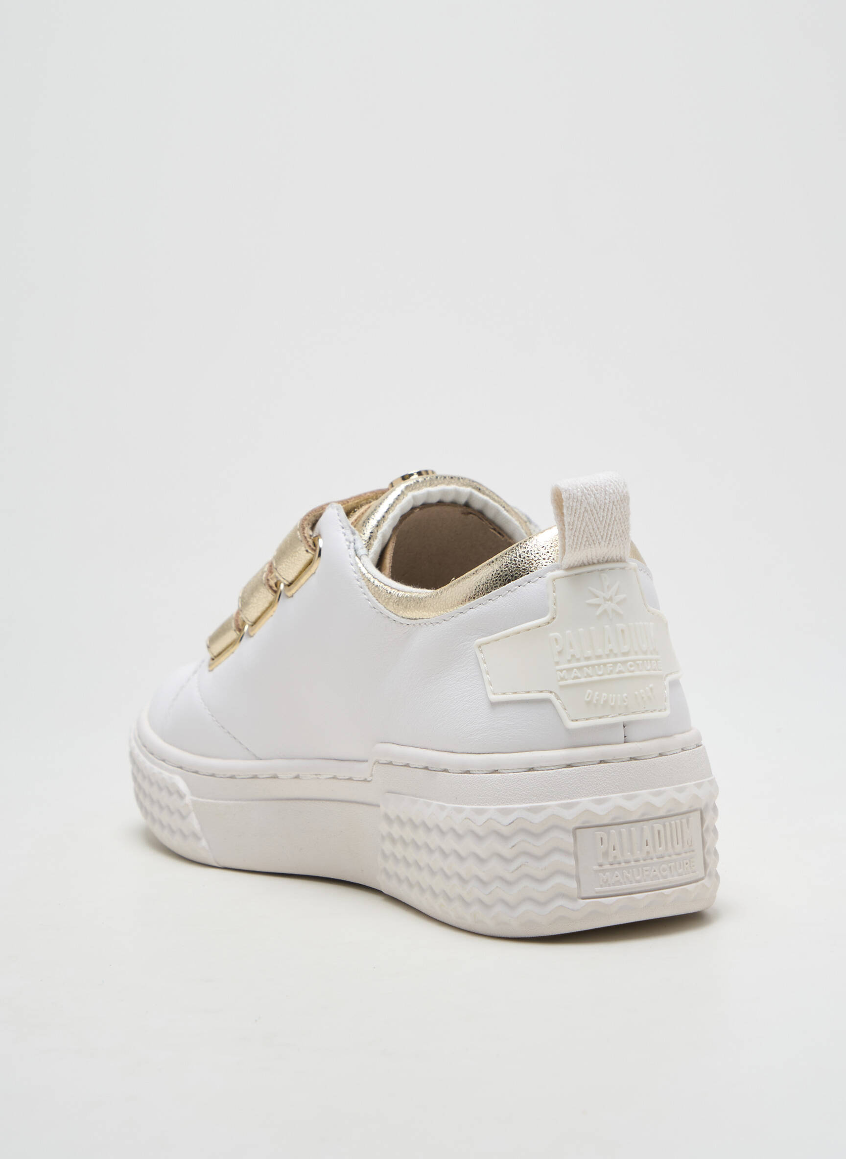 Profitez d’une occasion à ne pas manquer avec cette paire de baskets PALLADIUM pour femme, alliant style urbain et confort au quotidien, idéale pour celles qui veulent se faire plaisir sans se ruiner. Ce modèle se distingue par son design épuré tout en blanc, rehaussé de touches dorées sophistiquées sur les trois scratchs, offrant une allure contemporaine et facile à porter en toute situation. Avec leur semelle épaisse et travaillée, ces baskets apportent une touche tendance à toutes vos tenues, tout en restant une option économique parfaite pour se faire plaisir à petit prix.