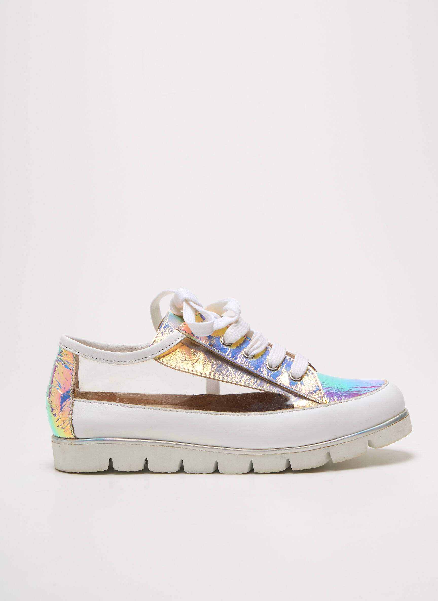 Craquez pour ces baskets de la marque PINTO DI BLU pour femme, un véritable bon plan pour apporter une touche d’originalité à votre look sans vous ruiner. Avec leur effet irisé aux reflets changeants subtilement associés à des détails blancs élégants, elles apportent une allure moderne et dynamique. Leur semelle épaisse promet un confort optimal à chaque pas, tandis que les surpiqûres et les empiècements transparents offrent une note de sophistication urbaine. C’est la paire idéale pour celles qui cherchent à faire des économies tout en profitant d’une chaussure tendance et facile à porter au quotidien.