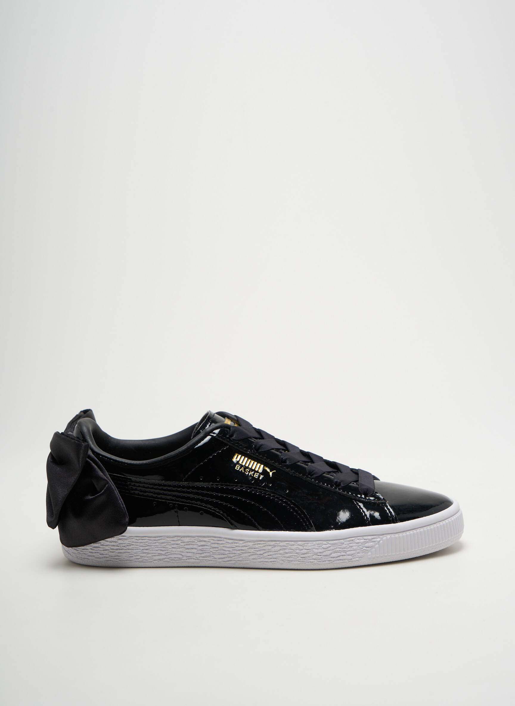 Saisissez l’occasion de faire une véritable affaire avec cette basket PUMA pour femme au design élégant et féminin, idéale pour apporter une touche tendance à vos tenues de tous les jours grâce à sa finition vernie noire et son nœud satiné à l’arrière. Profitez d’une paire originale à prix malin, parfaite pour combiner style et économie sans compromis sur la qualité.