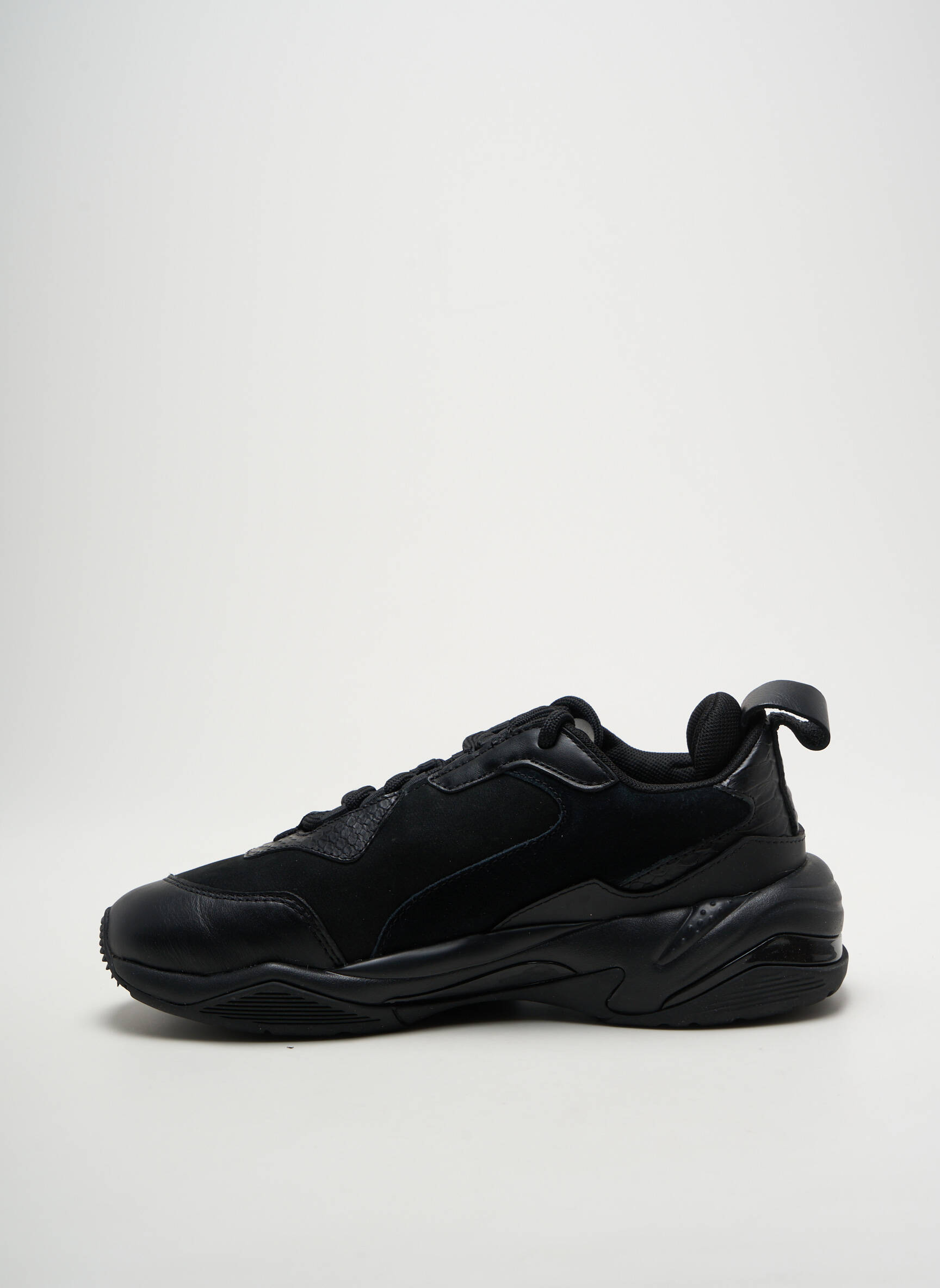 Profitez d’une occasion à ne pas manquer avec ces baskets pour femme de la marque PUMA, un essentiel tendance à prix mini qui donne du style à toutes vos tenues ; leur silhouette épaisse et leur design entièrement noir offrent une allure urbaine et moderne, tandis que les détails texturés et la semelle robuste assurent confort et caractère pour un look unique, à petit prix.