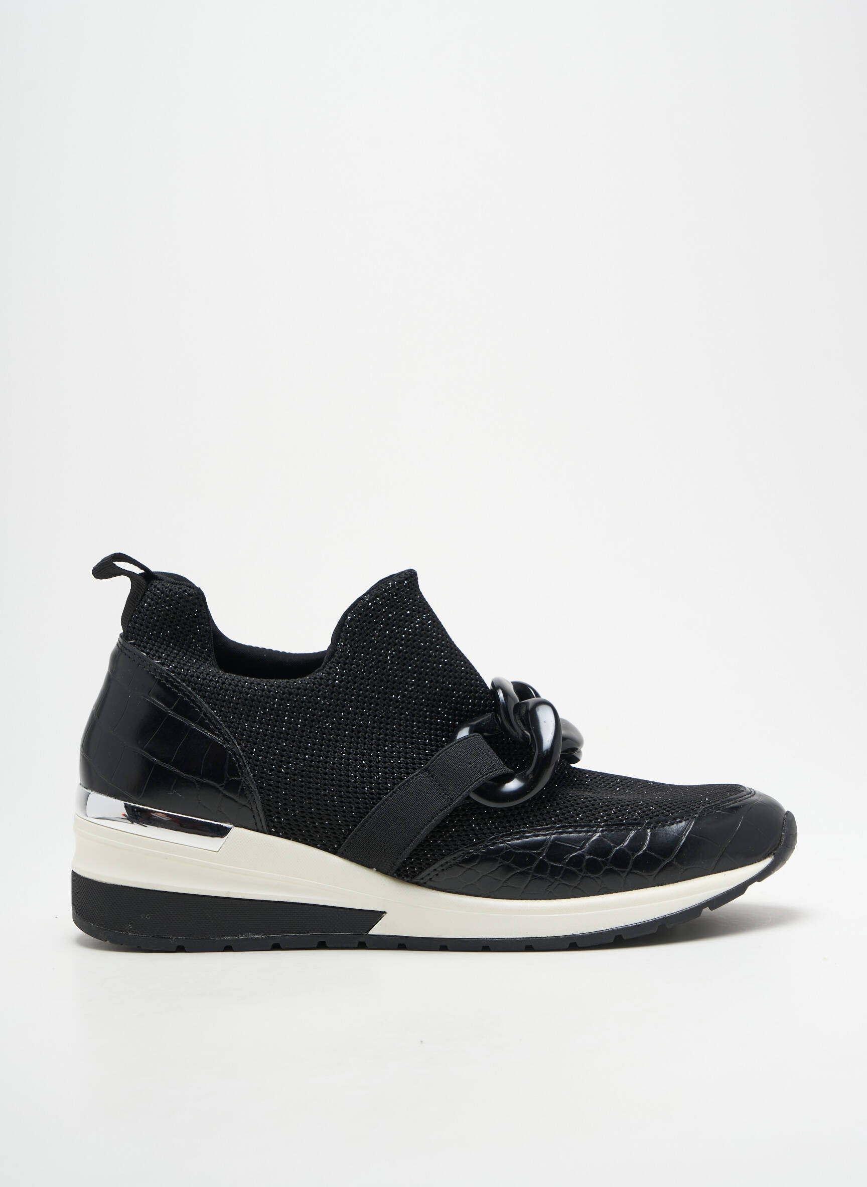 Craquez pour ces baskets REQINS pour femme qui allient style contemporain et confort, parfaites pour celles qui aiment dénicher de vraies bonnes affaires. Leur design noir élégant rehaussé de détails brillants et d’une semelle bicolore garantit un look moderne tout en restant facile à porter au quotidien, sans compromis sur le prix. Profitez d’une paire de baskets tendance à petit prix pour sublimer toutes vos tenues urbaines et décontractées.