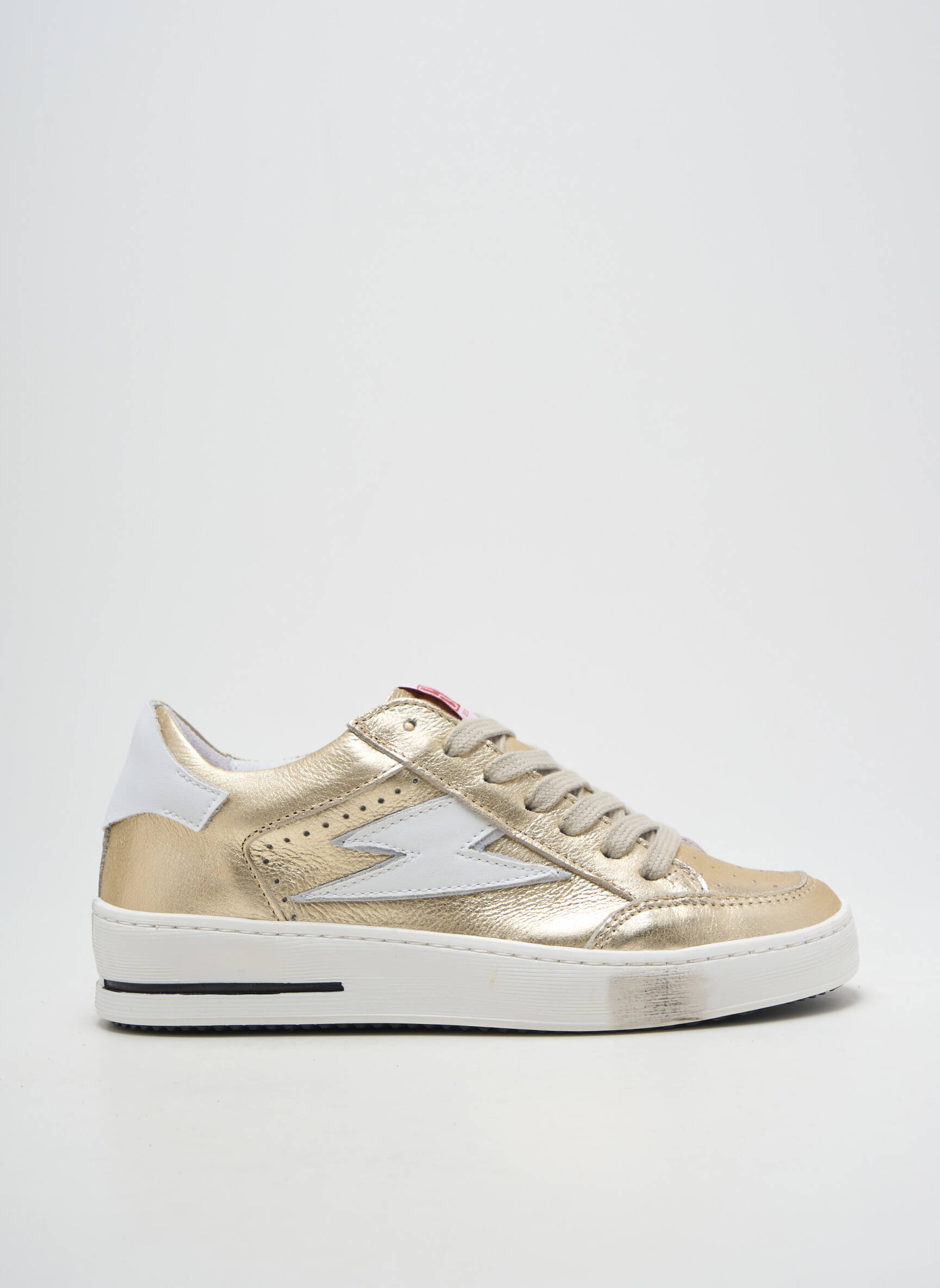 Profitez d'une occasion à petit prix en vous offrant cette basket SEMERDJIAN pour femme qui allie élégance et confort au quotidien. Son design doré lumineux est rehaussé par un éclair argenté sur le côté, tandis que les détails blancs à l’arrière et la semelle épaisse apportent une touche moderne et tendance. Idéale pour compléter vos tenues urbaines sans vous ruiner, cette basket est le choix parfait pour faire rimer style et économie.