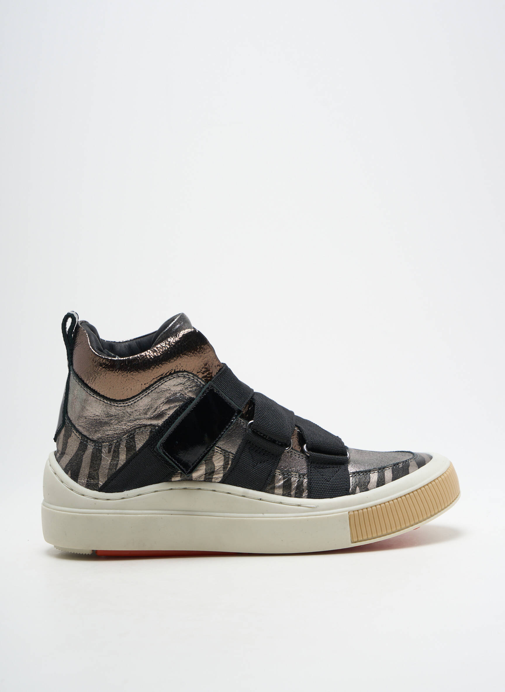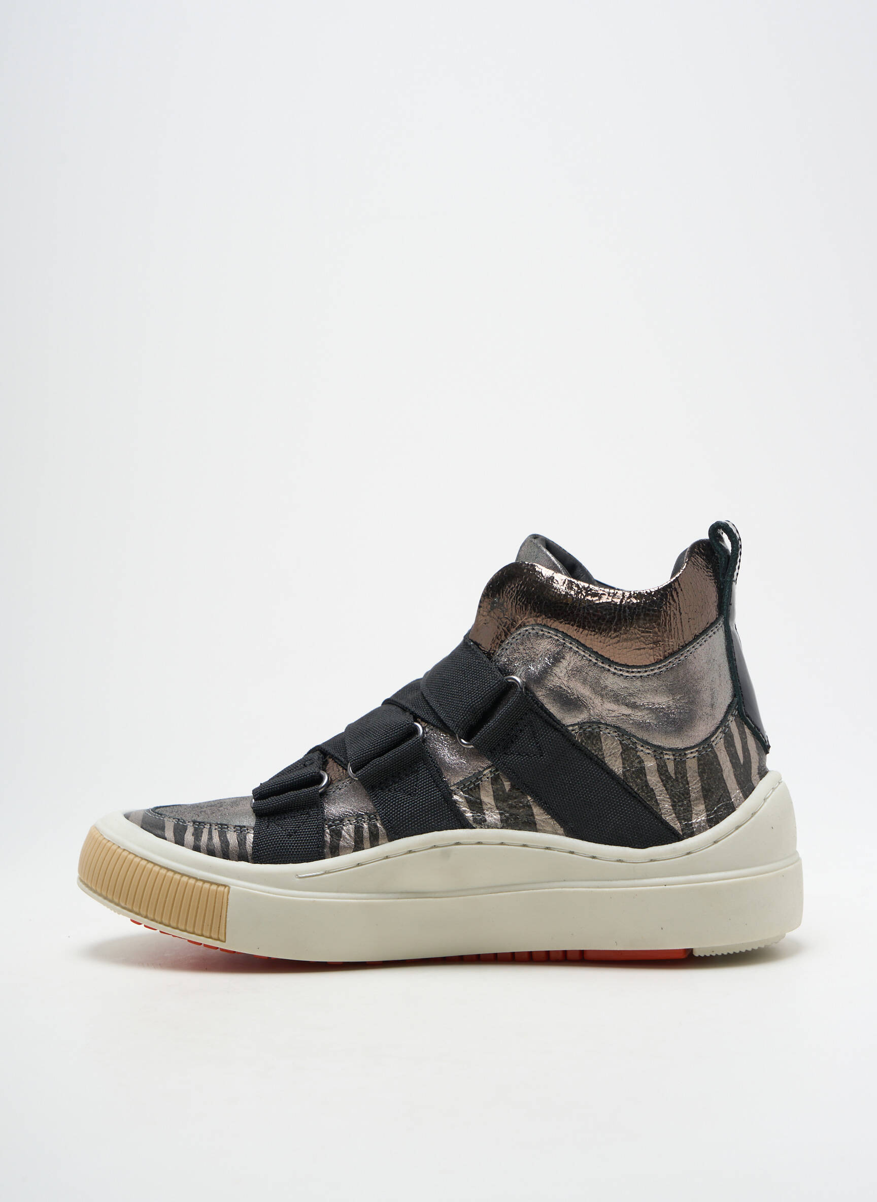Craquez pour cette paire de baskets SHELTER à prix mini et offrez à votre look une touche tendance sans vous ruiner. Avec sa silhouette montante et son motif animal élégant rehaussé de larges bandes noires, ce modèle assure un style unique et pratique à chaque pas, parfait pour les amatrices de bons plans qui veulent allier confort et originalité à petit prix.