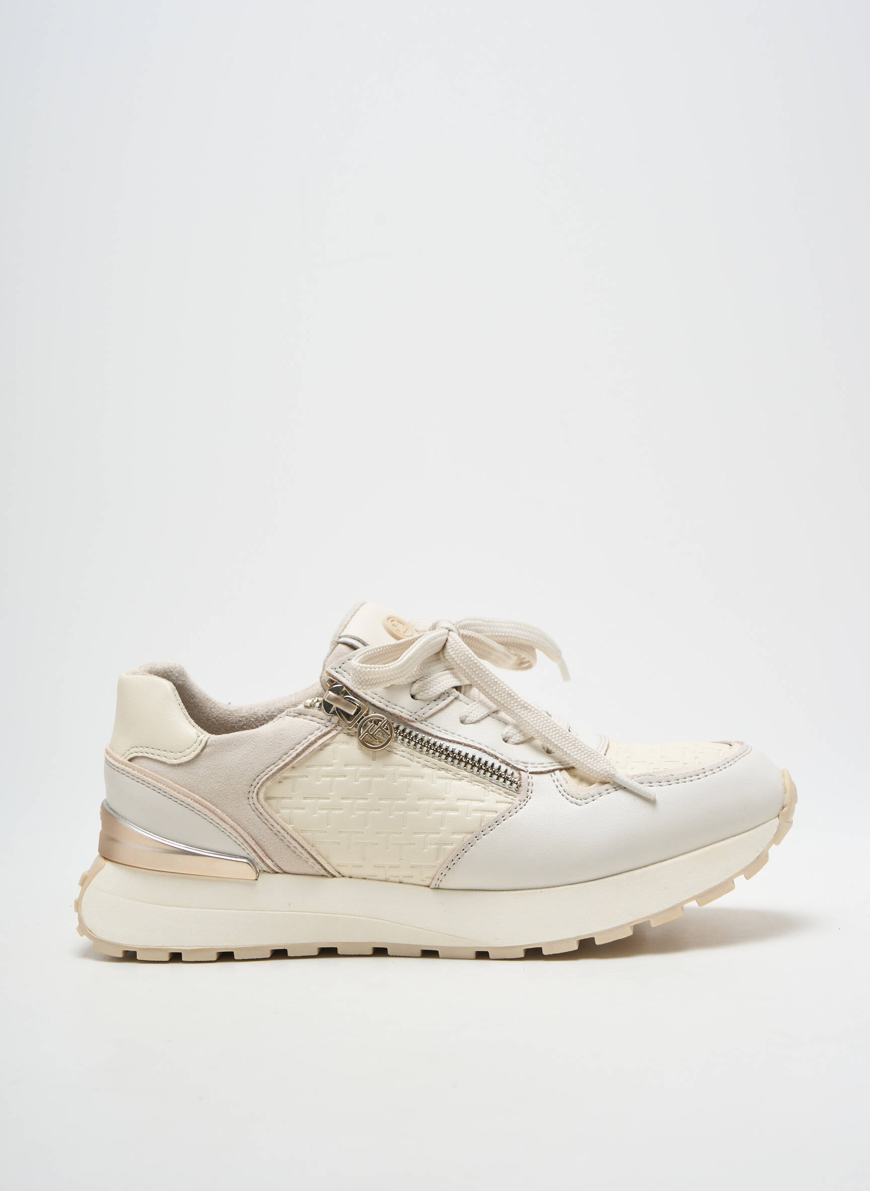 Craquez pour cette paire de baskets femme signée TOM TAILOR, une option tendance et confortable à prix mini, idéale pour celles qui recherchent une touche d’élégance sans se ruiner. Avec leur design raffiné mêlant différentes textures et leurs détails soignés comme la fermeture éclair sur le côté, ces baskets légèrement rehaussées subliment toutes vos tenues du quotidien tout en offrant un bon plan incontournable pour profiter d’un style premium sans compromis sur le budget.