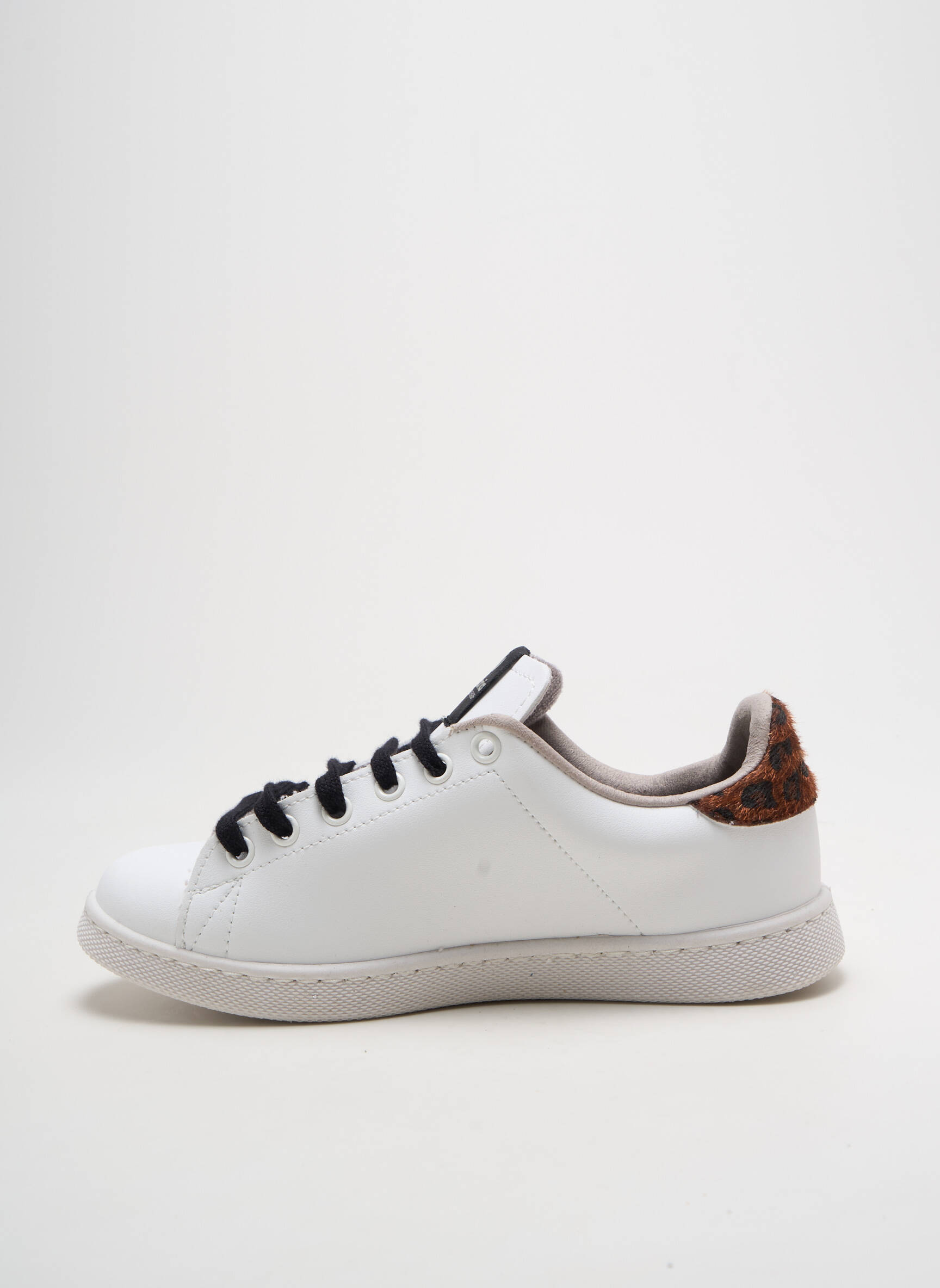 Profitez d’un bon plan irrésistible avec cette basket VICTORIA pour femme, qui combine à la perfection style et petit prix. Le cuir blanc épuré est rehaussé d’un logo scintillant en paillettes argentées sur le côté, tandis qu’une touche d’imprimé léopard au talon ajoute une note tendance et originale. Avec ses lacets noirs contrastants, ce modèle apporte un twist moderne à toutes vos tenues, pour un look mode sans vous ruiner.