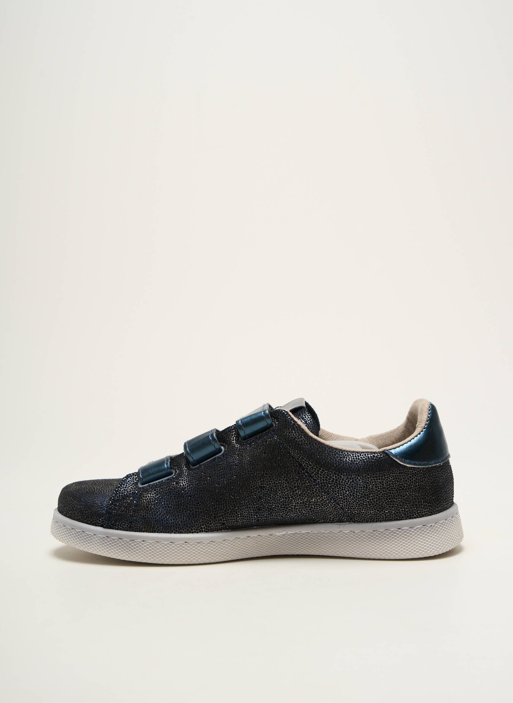 Profitez d'une occasion à ne pas manquer avec cette basket VICTORIA pour femme, pensée pour celles qui cherchent à allier style et économies. Ce modèle arbore une finition noire élégante légèrement texturée, réhaussée de trois scratchs pratiques au ton bleu-gris pour un enfilage rapide et un maintien optimal tout au long de la journée. Sa semelle blanche apporte une touche de contraste moderne qui s'adapte aussi bien à un look décontracté qu'à une tenue plus citadine, faisant de cette basket le choix malin et tendance pour compléter votre collection à petit prix.