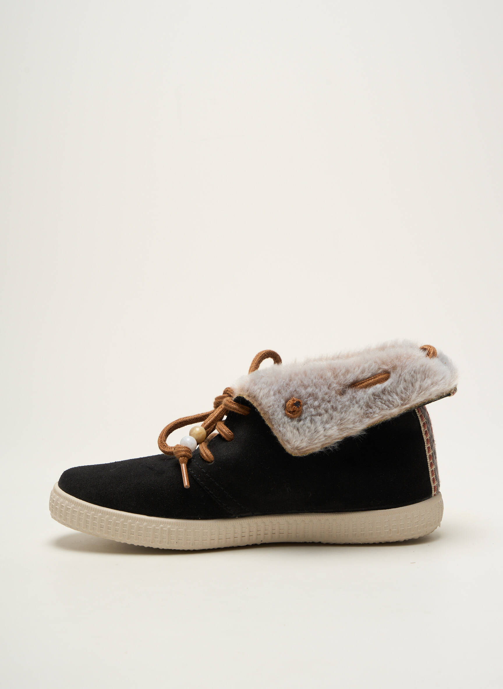 Craquez pour cette basket Victoria femme au look tendance, idéale pour se faire plaisir sans se ruiner ! Son design allie une tige noire élégante à une doublure effet fourrure toute douce pour un maximum de confort et de chaleur. Les lacets camel agrémentés de perles ajoutent une touche originale et raffinée, tandis que la semelle épaisse promet une bonne tenue au quotidien. Ce modèle polyvalent à petit prix est parfait pour accompagner vos tenues d’hiver tout en réalisant de belles économies.