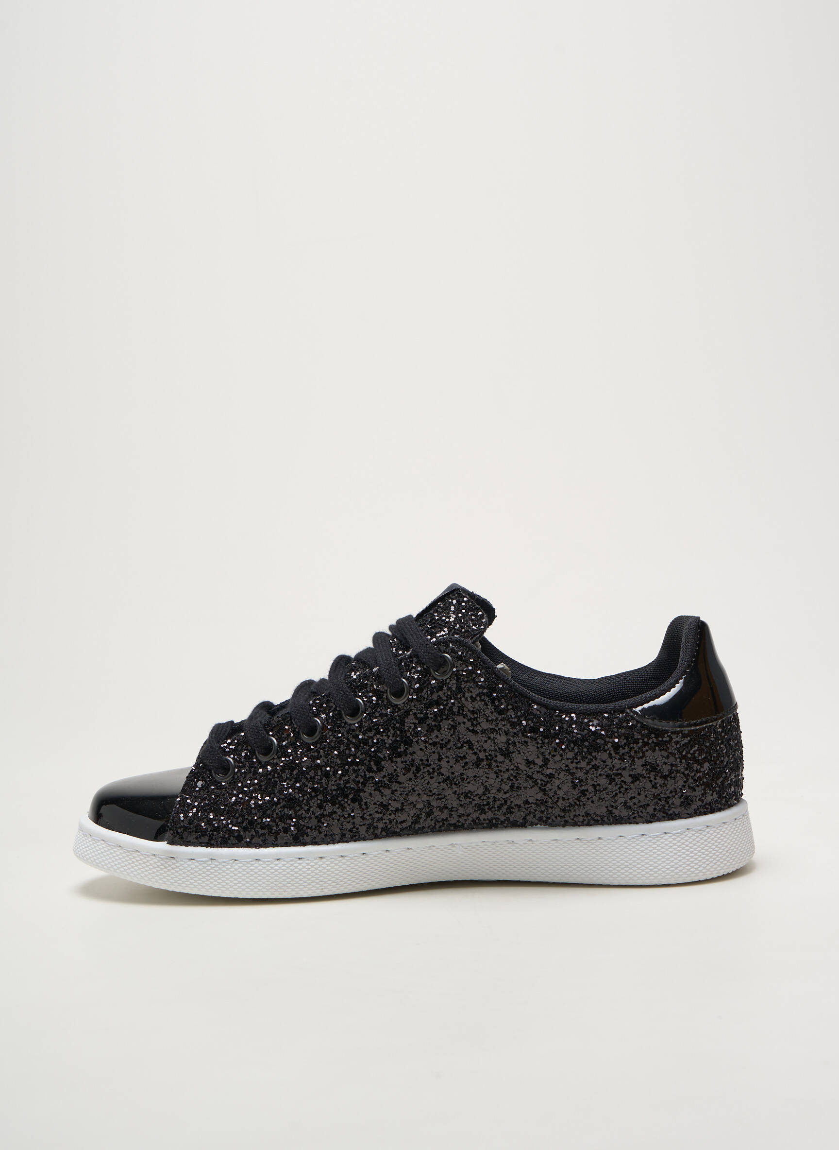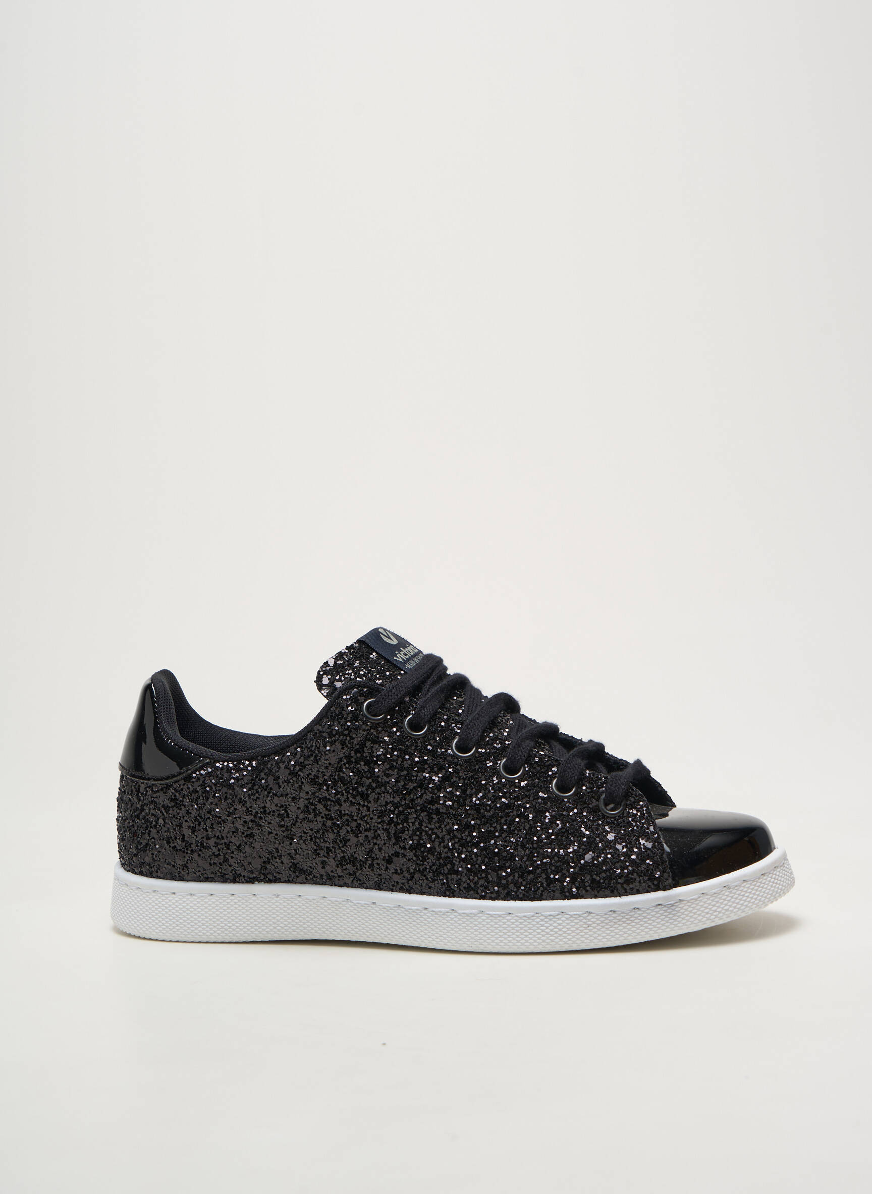 Craquez pour ces baskets Victoria pour femme, une véritable opportunité à prix mini pour ajouter une touche tendance à votre look. Avec leur finition pailletée noire et leurs détails vernis, elles apportent immédiatement du style tout en restant faciles à porter au quotidien grâce à leur semelle blanche qui contraste élégamment. Ce modèle combine confort et originalité, parfait pour celles qui veulent se faire plaisir sans se ruiner.