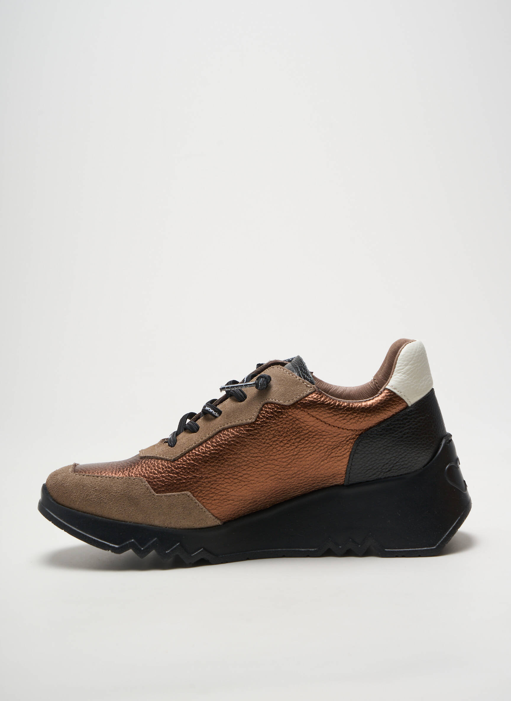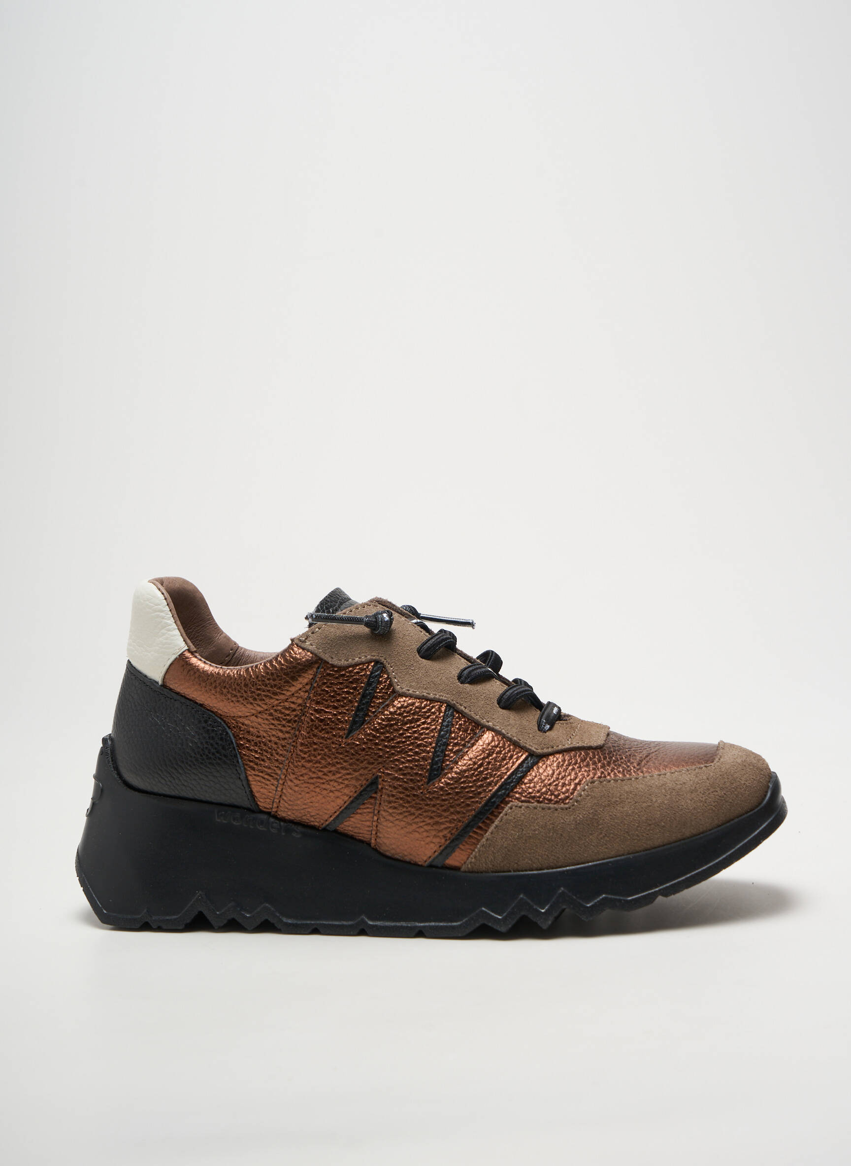 Saisissez l’occasion de faire des économies sur cette basket femme de la marque WONDERS, au style unique avec son mélange de nuances marron et bronze, souligné par des détails noirs contrastants et une semelle épaisse ultra tendance. Parfaite pour suivre la mode sans se ruiner, cette paire allie originalité et confort pour un look affirmé au quotidien à petit prix.
