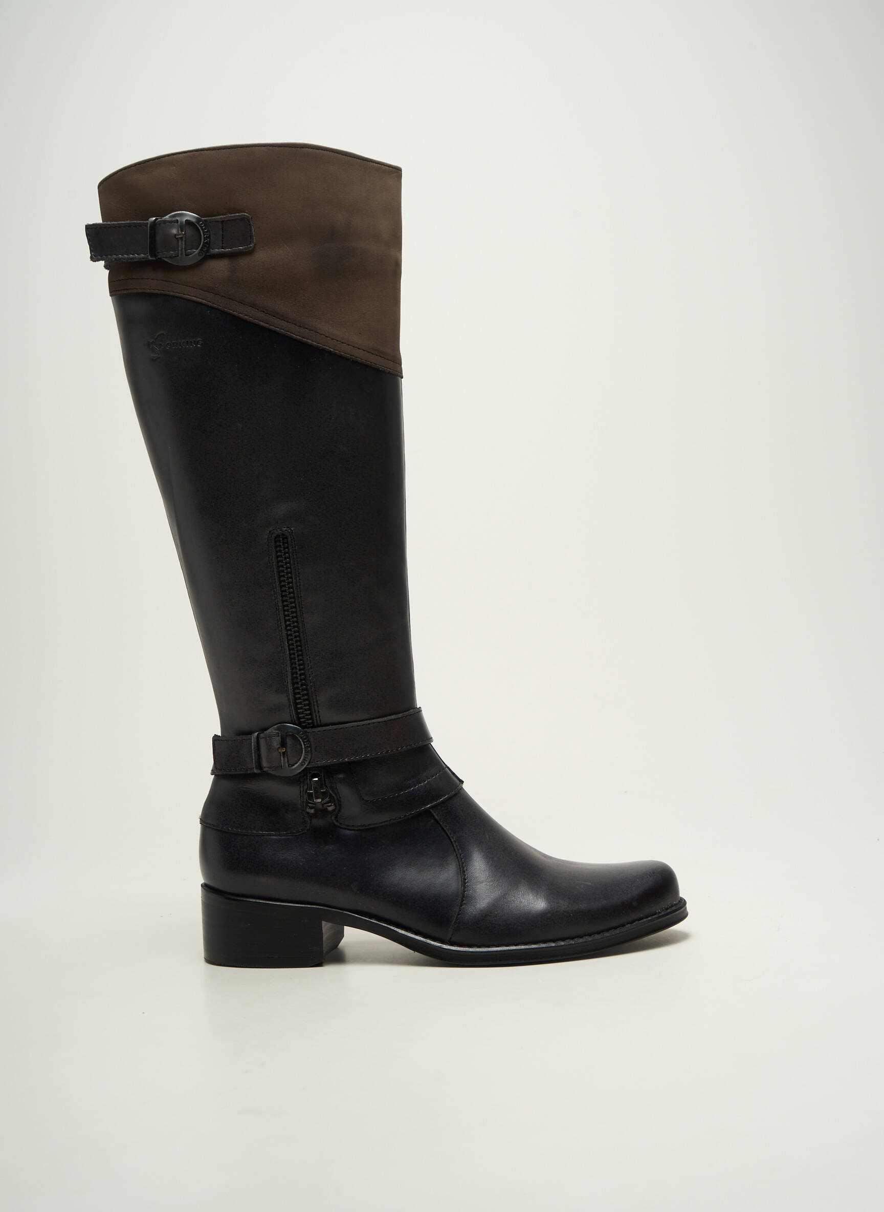 Craquez pour cette paire de bottes DORKING pour femme, un vrai bon plan pour allier style et économie sans compromis. Leur tige haute au cuir bicolore, associant sobriété du noir et touche originale de marron, mise sur un design travaillé avec deux brides à boucles métalliques sur le haut et la cheville. Avec leur bout légèrement arrondi et leur petit talon large, elles offrent un look élégant et confortable parfait pour la vie de tous les jours ou pour rehausser vos tenues d’automne-hiver. Profitez de ce modèle raffiné à prix doux, idéal pour vous offrir une pièce tendance sans vous ruiner.