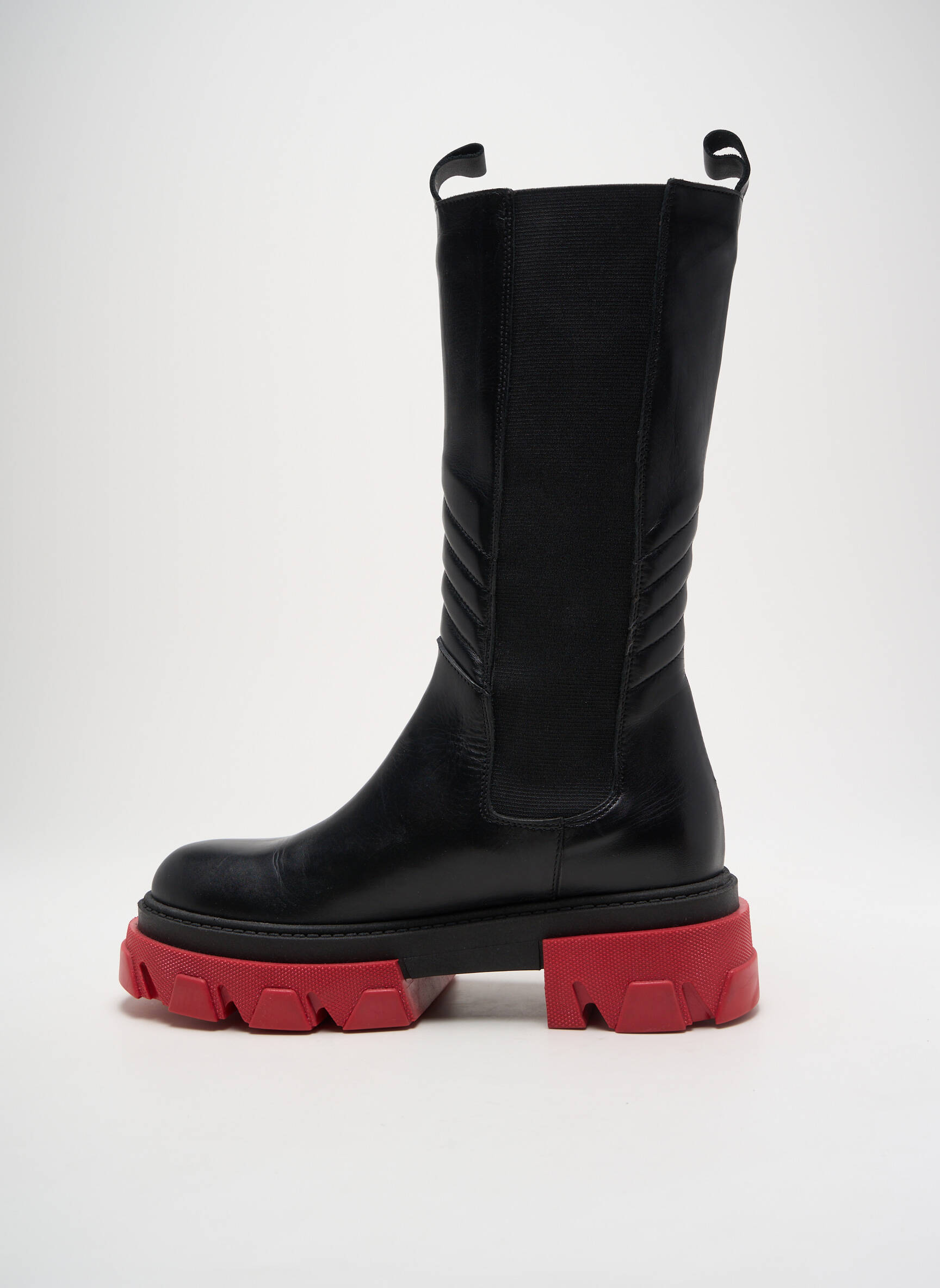 Pour créer un look tendance et dynamique, misez sur un jean slim ou un pantalon en cuir, associés à une veste oversize ou un manteau droit pour structurer la silhouette. Ces bottes se marient aussi très bien avec une robe pull ou une jupe midi, qui feront ressortir leur caractère moderne. Une touche de couleur ou des accessoires contrastés viendront souligner l’originalité de la semelle, pour une allure urbaine et assurée à petit prix.