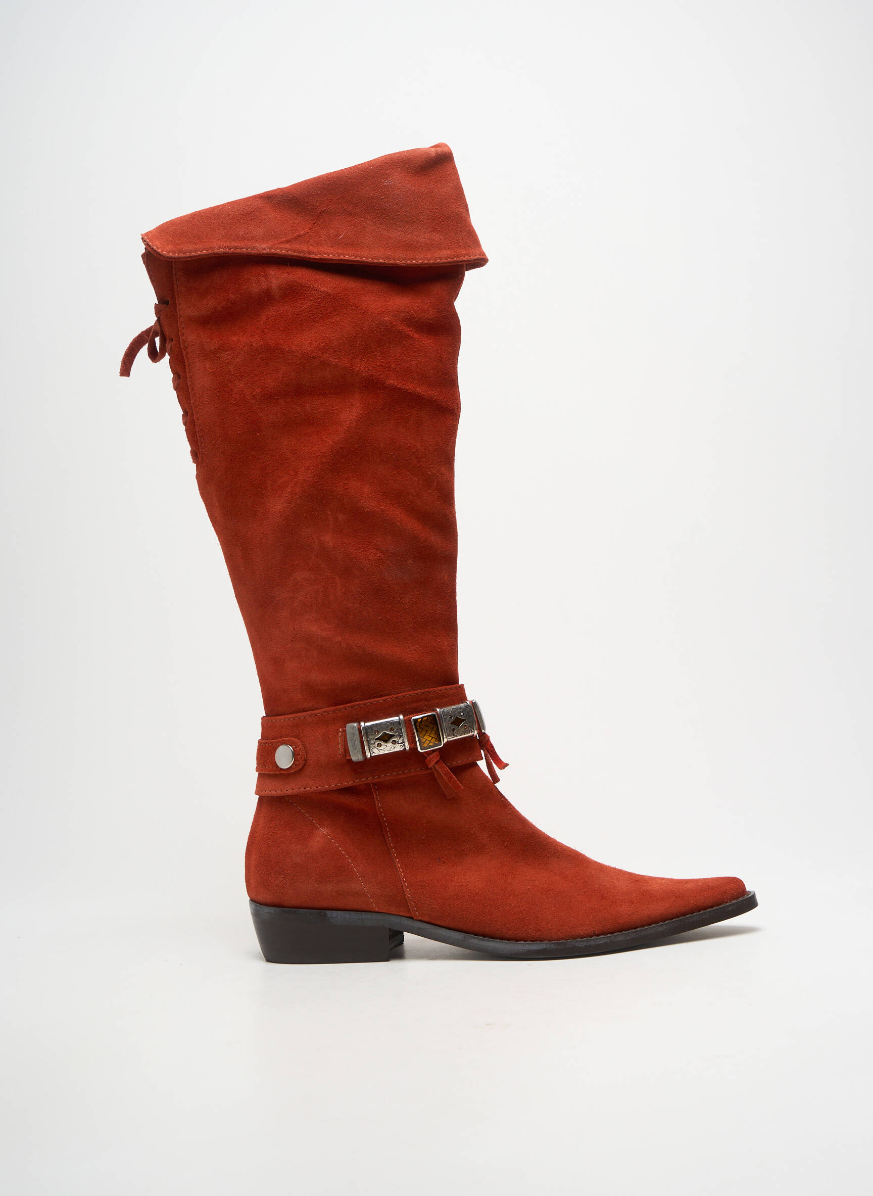 Profitez d’un bon plan mode en vous offrant ces superbes bottes REGARD pour femme, à prix mini, qui allient élégance et originalité tout en apportant une touche chaleureuse à vos tenues. Leur allure moderne et décontractée est sublimée par une matière effet suédine et une couleur rouge brique intense, tandis que la finition à revers et la bride décorative ornée de détails métalliques apportent un charme indéniable. Voilà une occasion rêvée de se distinguer avec style sans se ruiner.