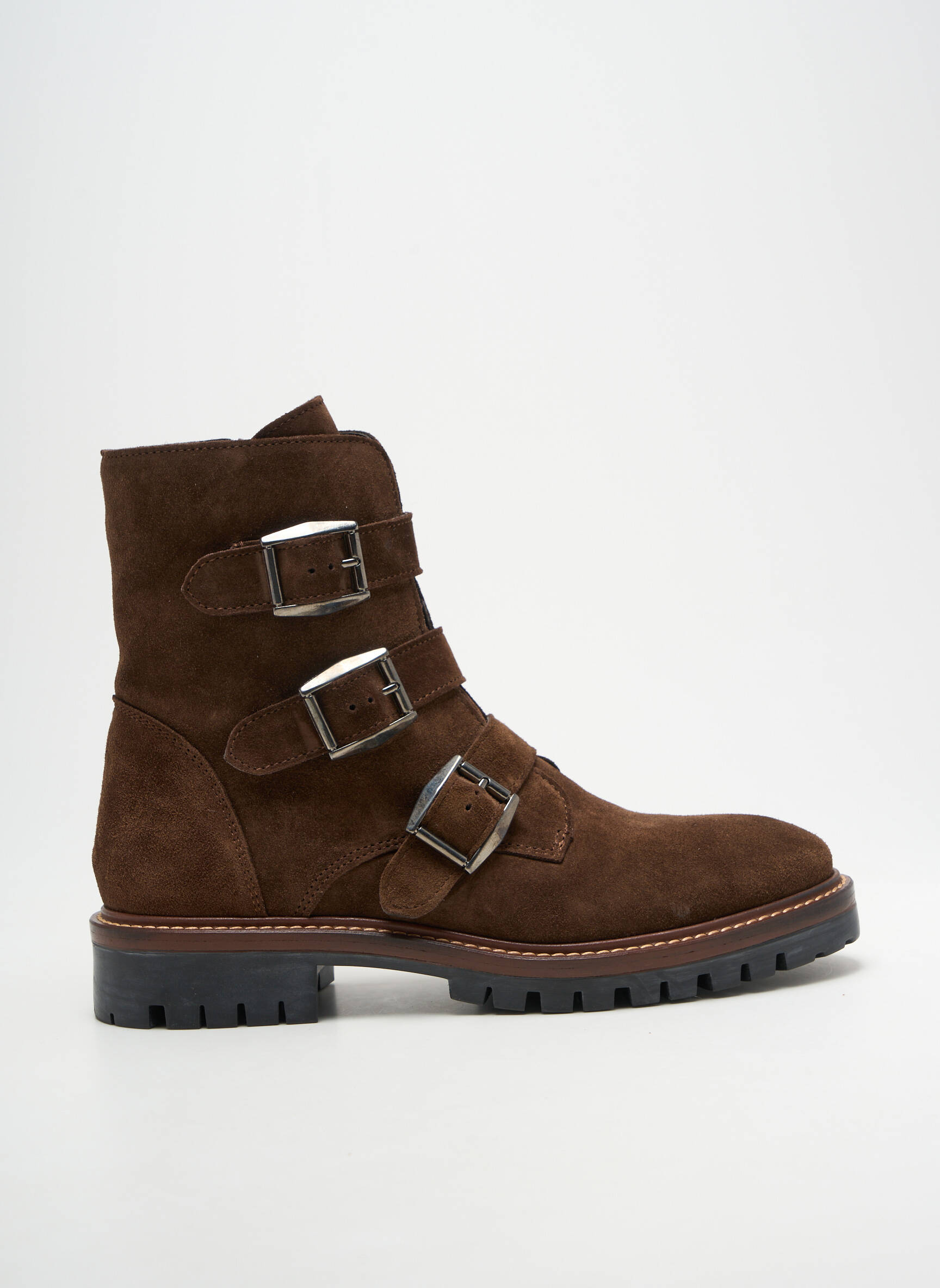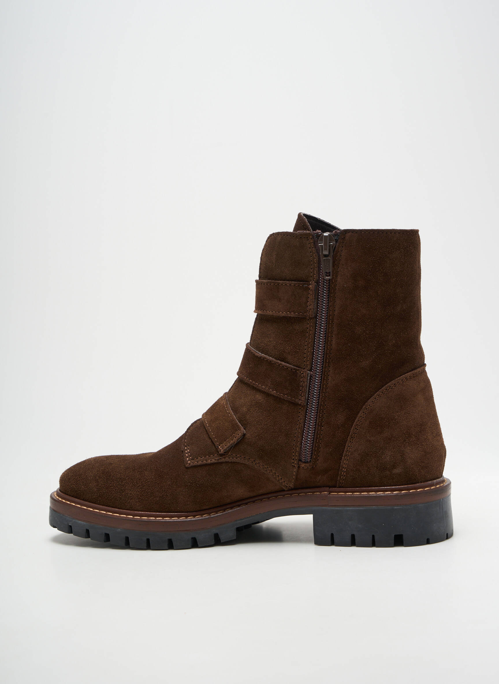Voici l'occasion idéale de vous offrir une paire de bottines tendance à prix mini avec ce modèle ALPE pour femme, qui séduit par son cuir suédé marron profond et ses trois élégantes boucles métalliques pour un look affirmé. La semelle crantée vous assure un confort optimal au quotidien tandis que la finition soignée promet un style moderne sans compromis, parfait pour miser sur une pièce mode de qualité sans vous ruiner.