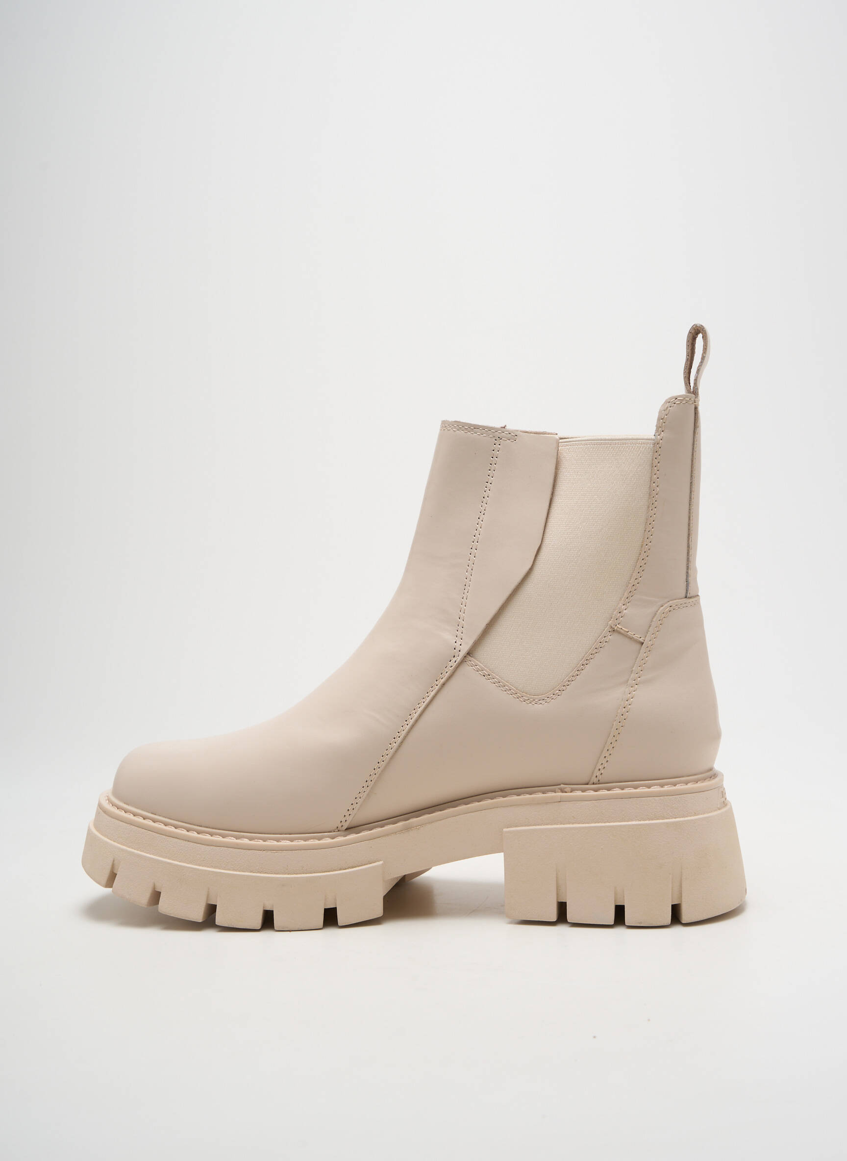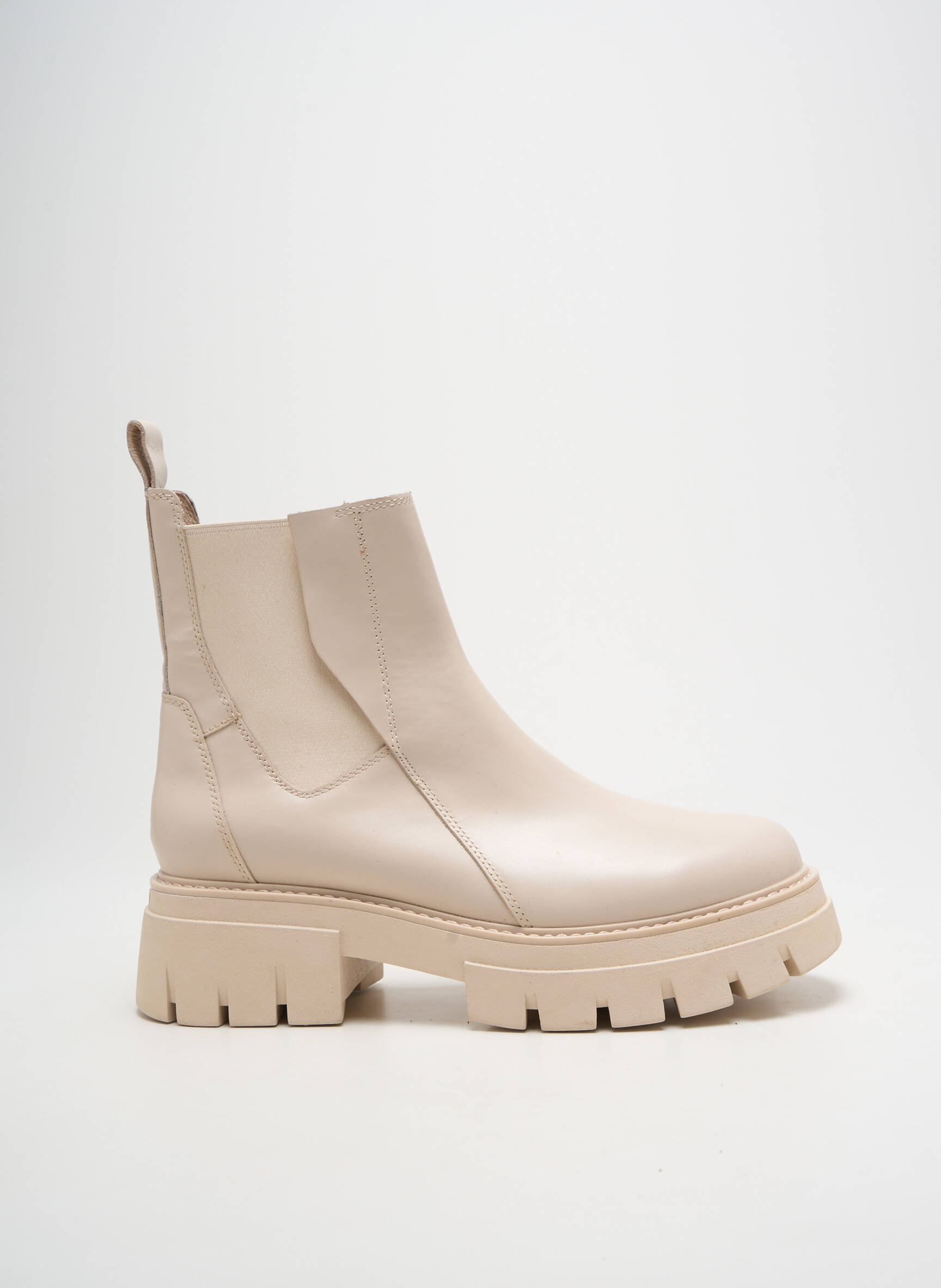 Profitez d’un vrai bon plan avec ces bottines ASH pour femme, idéales pour donner une touche tendance à toutes vos tenues sans vous ruiner. Leur joli coloris beige clair s’accorde facilement et leur semelle épaisse crantée apporte un côté moderne et confortable, parfait pour un look actuel à petit prix.