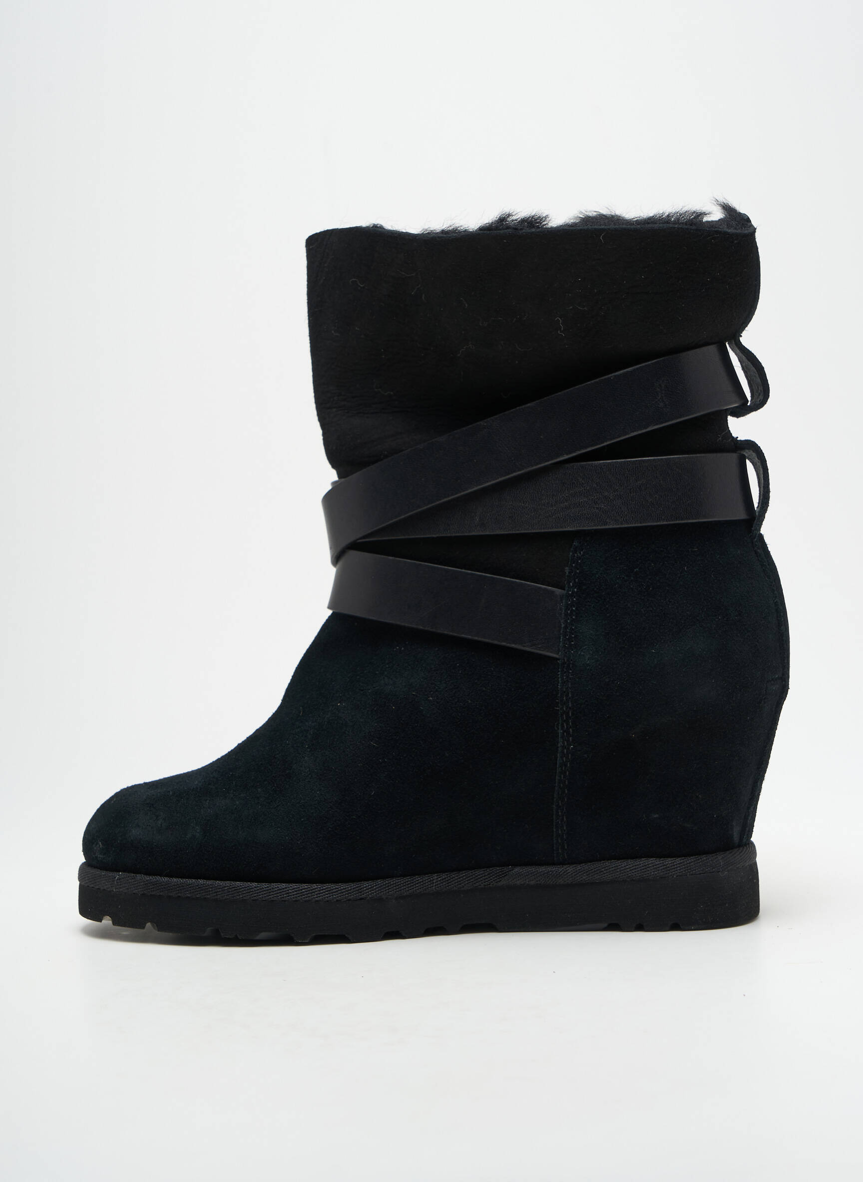 Profitez d'une occasion unique pour vous offrir ces bottines ASH à prix mini, parfaites pour donner du style à toutes vos tenues. Ce modèle se distingue par son design tendance, mariant un cuir suédé noir raffiné à des brides décoratives dotées de boucles métalliques, tout en assurant un excellent maintien du pied. La semelle compensée vous apporte une touche d’élégance tout en allongeant la silhouette, et l’intérieur doublé promet un confort optimal tout au long de la journée. Un vrai bon plan pour les amatrices de mode à la recherche d’un look sophistiqué sans dépenser une fortune.