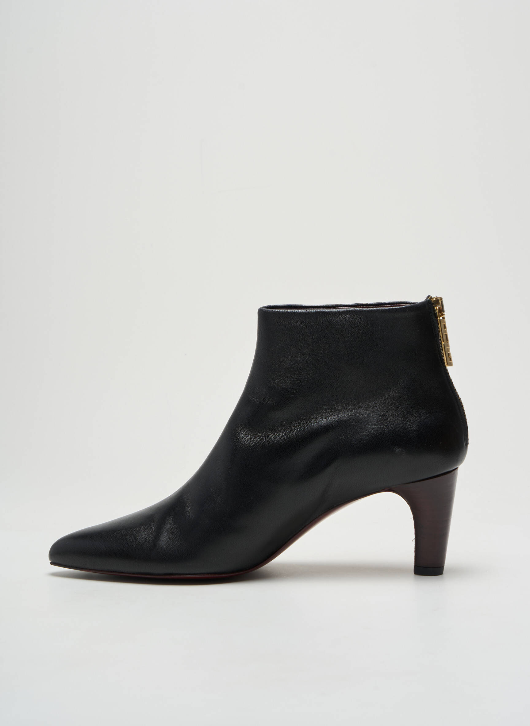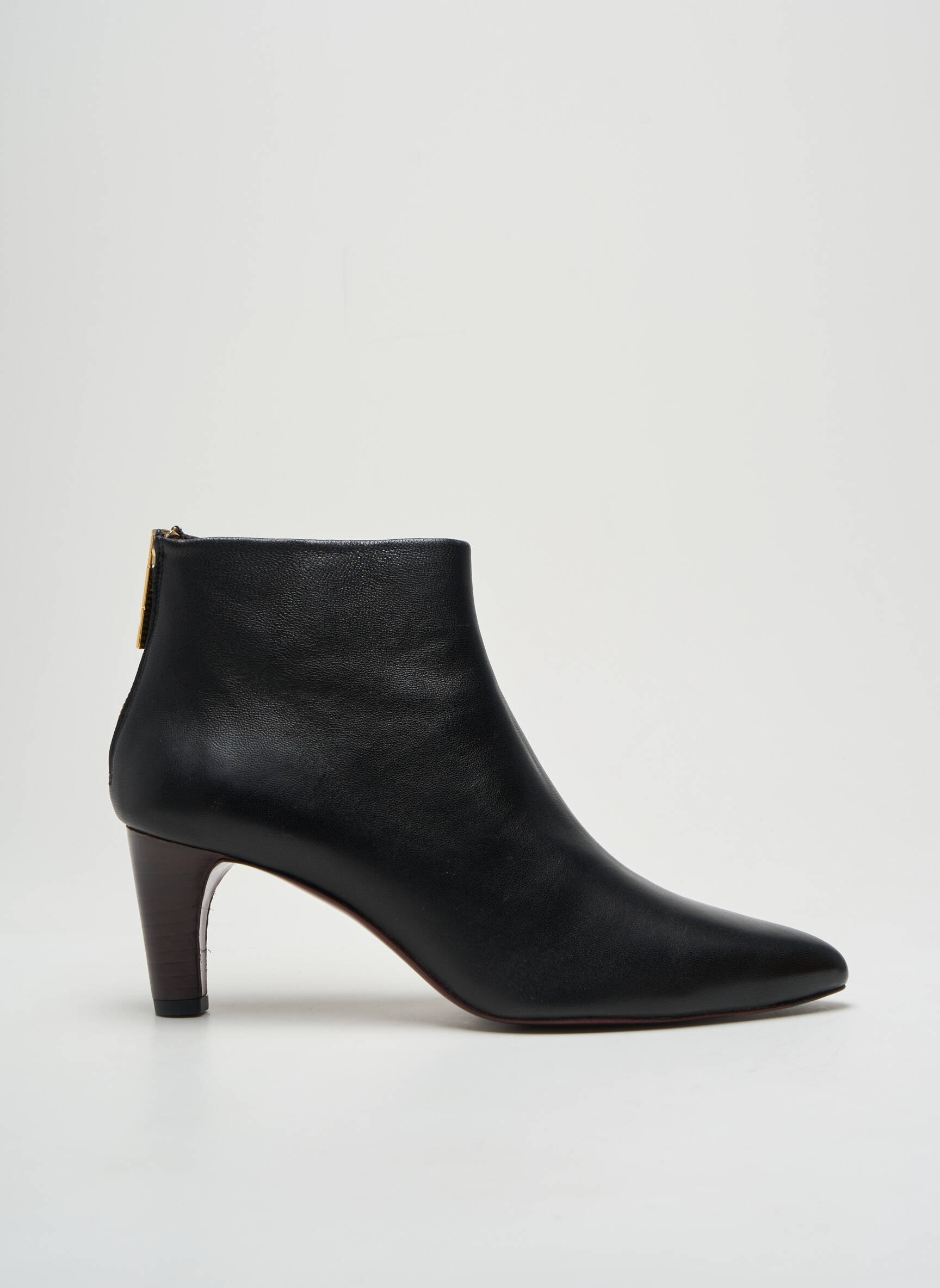 Plongez dans l'élégance intemporelle avec ces bottillons de la marque AVRIL GAU, conçus pour sublimer chaque pas avec raffinement. Leur cuir noir lisse épouse subtilement la silhouette du pied, offrant une allure à la fois chic et moderne. La forme épurée et le bout pointu apportent une touche de sophistication, tandis que le talon délicat rehausse votre stature avec grâce. La fermeture zippée à l'arrière non seulement facilite l'enfilage, mais ajoute également une note contemporaine à ce modèle classique. Ces bottillons s'associent aussi bien à une robe élégante qu'à un pantalon tailleur, faisant d'eux un choix parfait pour toutes les occasions.