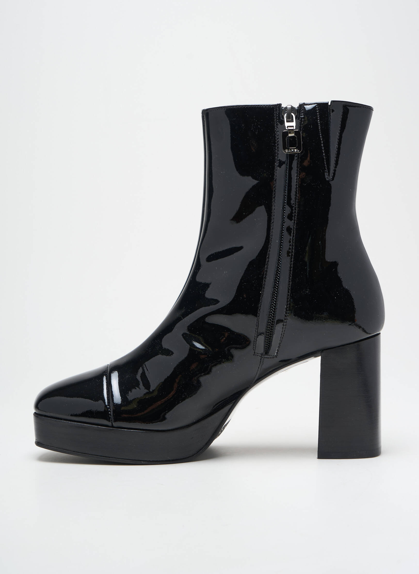À saisir absolument pour un look chic à prix mini, cette bottine noire signée Carel Paris allie élégance intemporelle et touche rétro avec son cuir verni brillant, son bout carré délicat et son talon bloc qui élance la silhouette tout en assurant un confort optimal ; une pièce rare à retrouver ici sans se ruiner, idéale pour sublimer toutes vos tenues de saison.