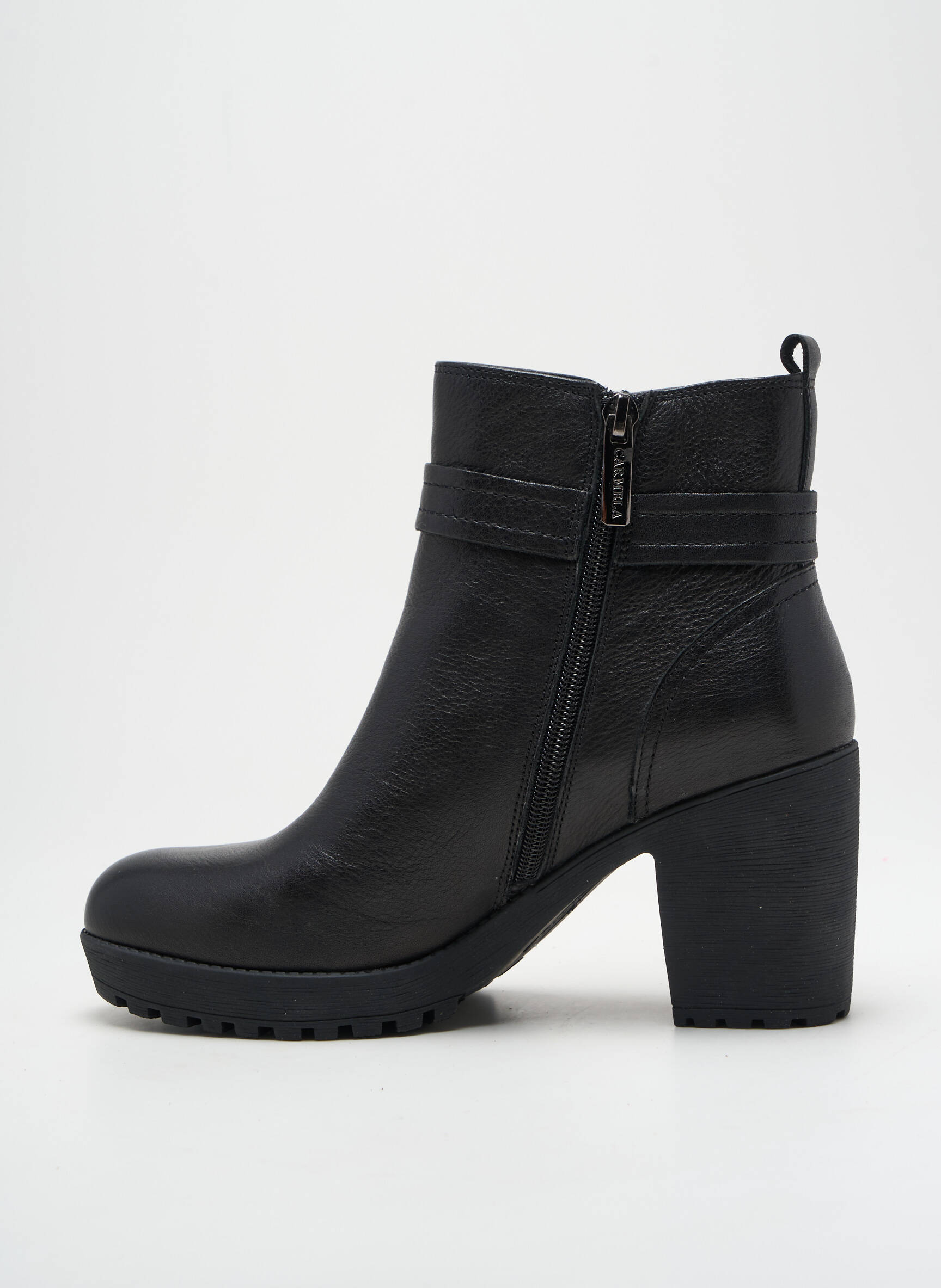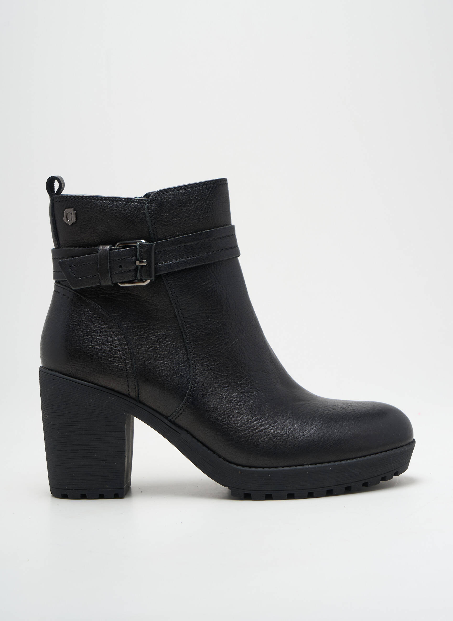 Profitez d’un bon plan irrésistible avec ces bottines CARMELA pour femme, véritable coup de cœur pour donner du style à toutes vos tenues sans vous ruiner. Le modèle allie élégance et caractère avec son cuir noir lisse relevé par une boucle décorative, tandis que son talon épais offre allure et confort au quotidien. Parfaites pour traverser la saison avec classe, ces boots réunissent qualité et petit prix, une opportunité à saisir pour ajouter une valeur sûre à votre dressing.