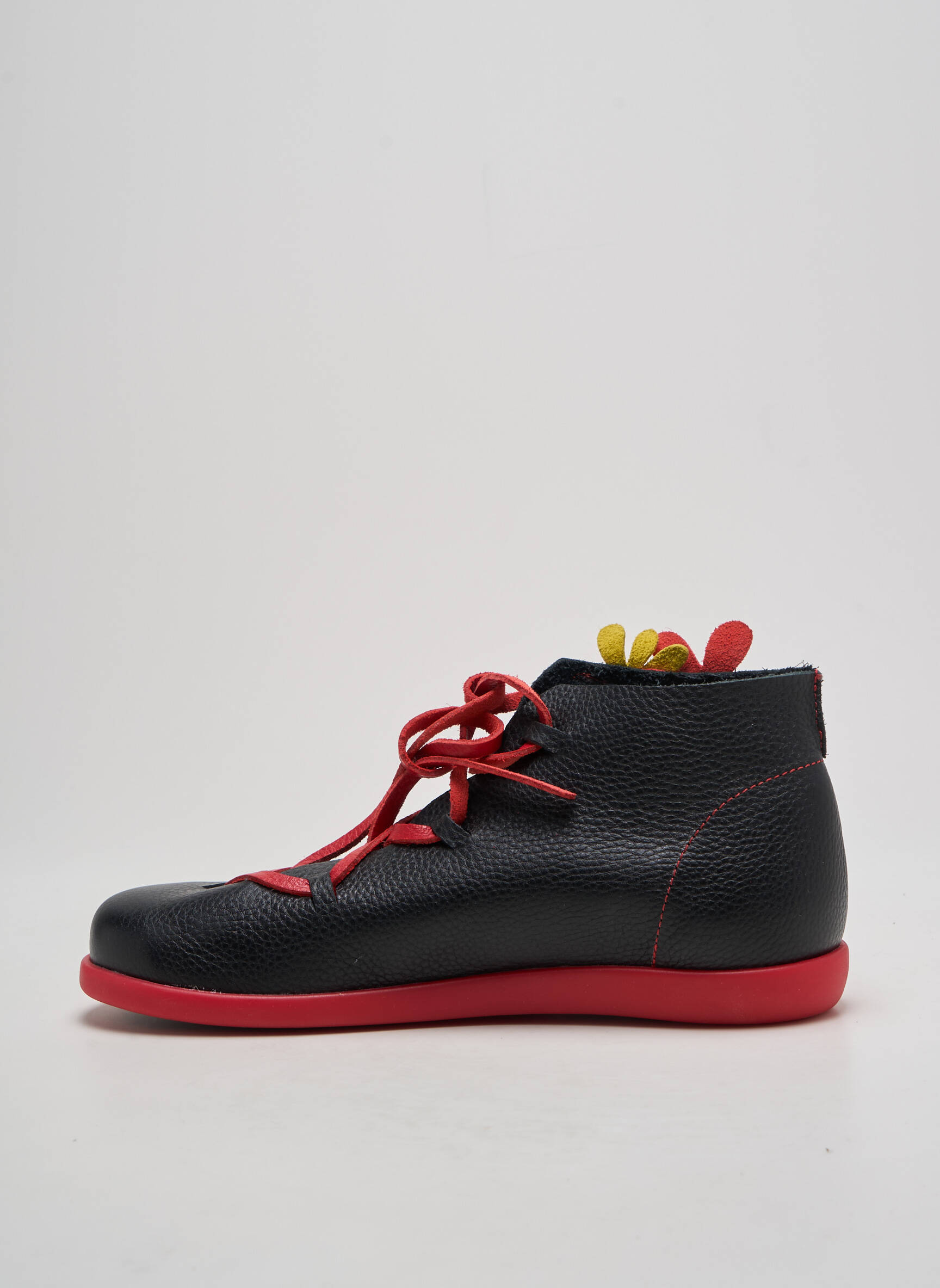 Craquez pour ces bottines CLAMP femme à prix mini, une véritable occasion pour affirmer votre style sans vous ruiner. Leur allure originale se démarque grâce à une tige noire agrémentée de fleurs colorées en relief et des lacets rouges qui ajoutent une touche de fantaisie. Le détail de la semelle contrastée apporte une note moderne et dynamique, idéale pour accompagner toutes vos tenues du quotidien avec confort et personnalité. Ne passez pas à côté de ce bon plan qui combine design unique et petits prix.