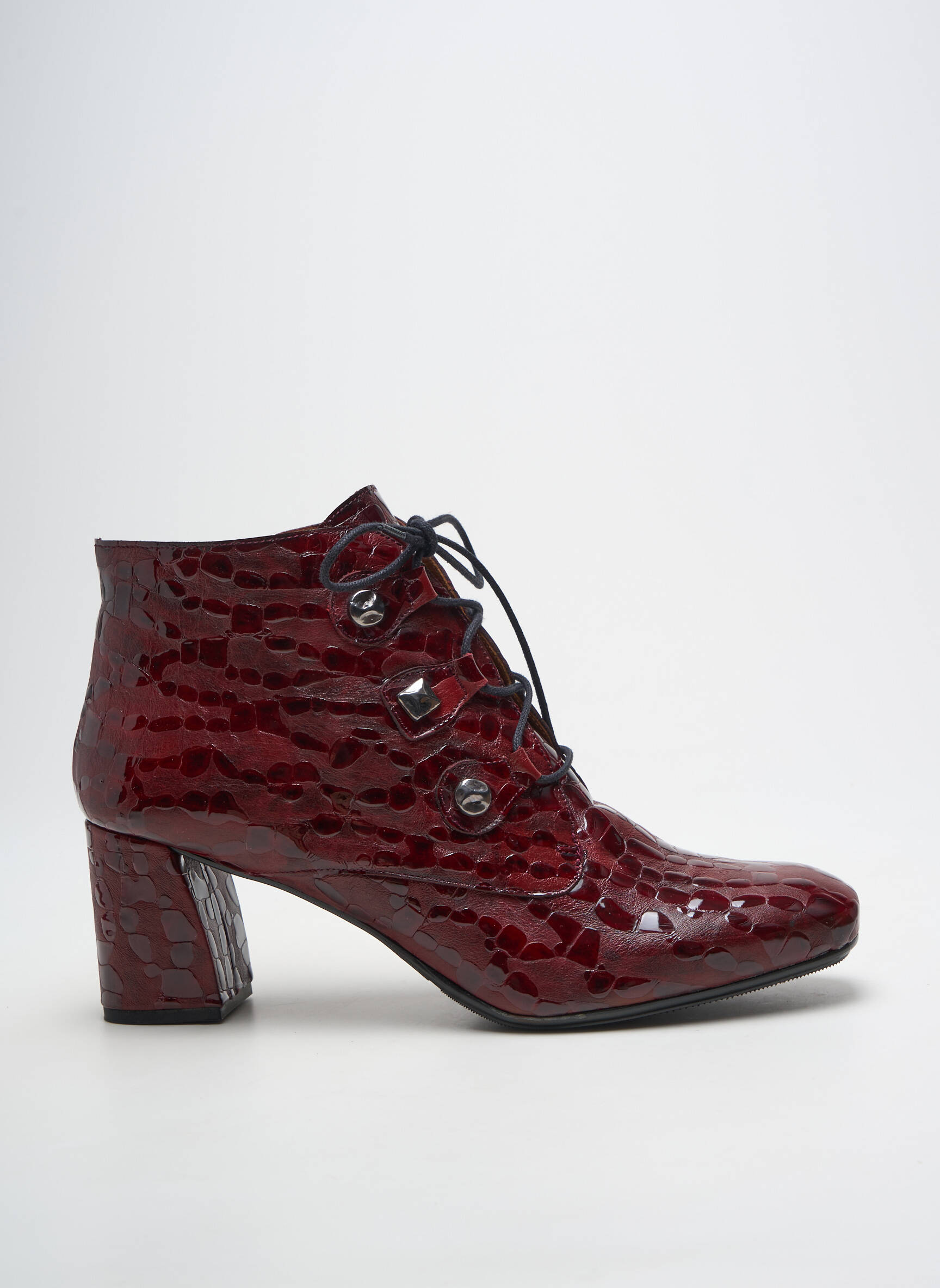 Profitez d’un véritable bon plan avec ces bottines de la marque DANSI, pensées pour apporter une touche d’élégance à petit prix à votre dressing. Le cuir verni effet croco d’une belle couleur bordeaux fait toute la différence, tandis que le talon stable et le laçage moderne offrent un confort au quotidien. Idéales pour celles qui aiment allier originalité et sophistication sans se ruiner, ces boots feront sensation en toutes occasions.