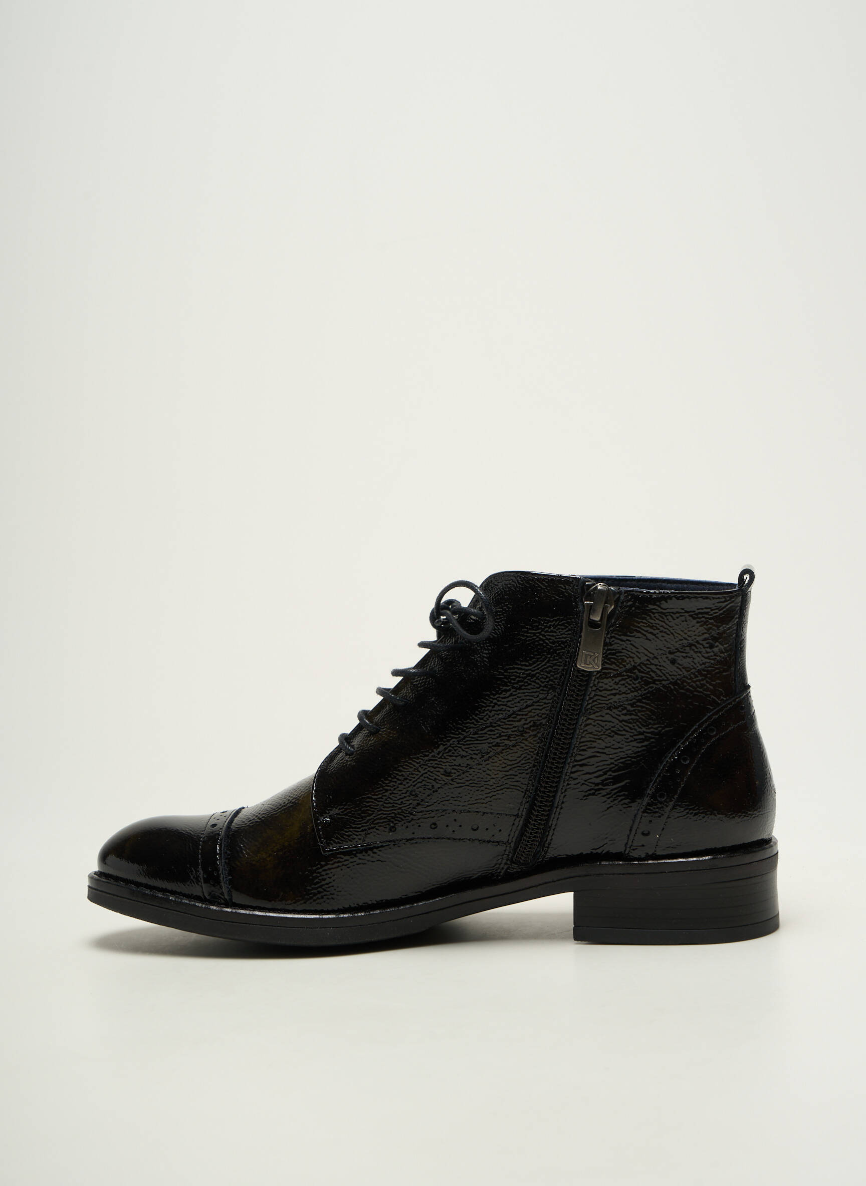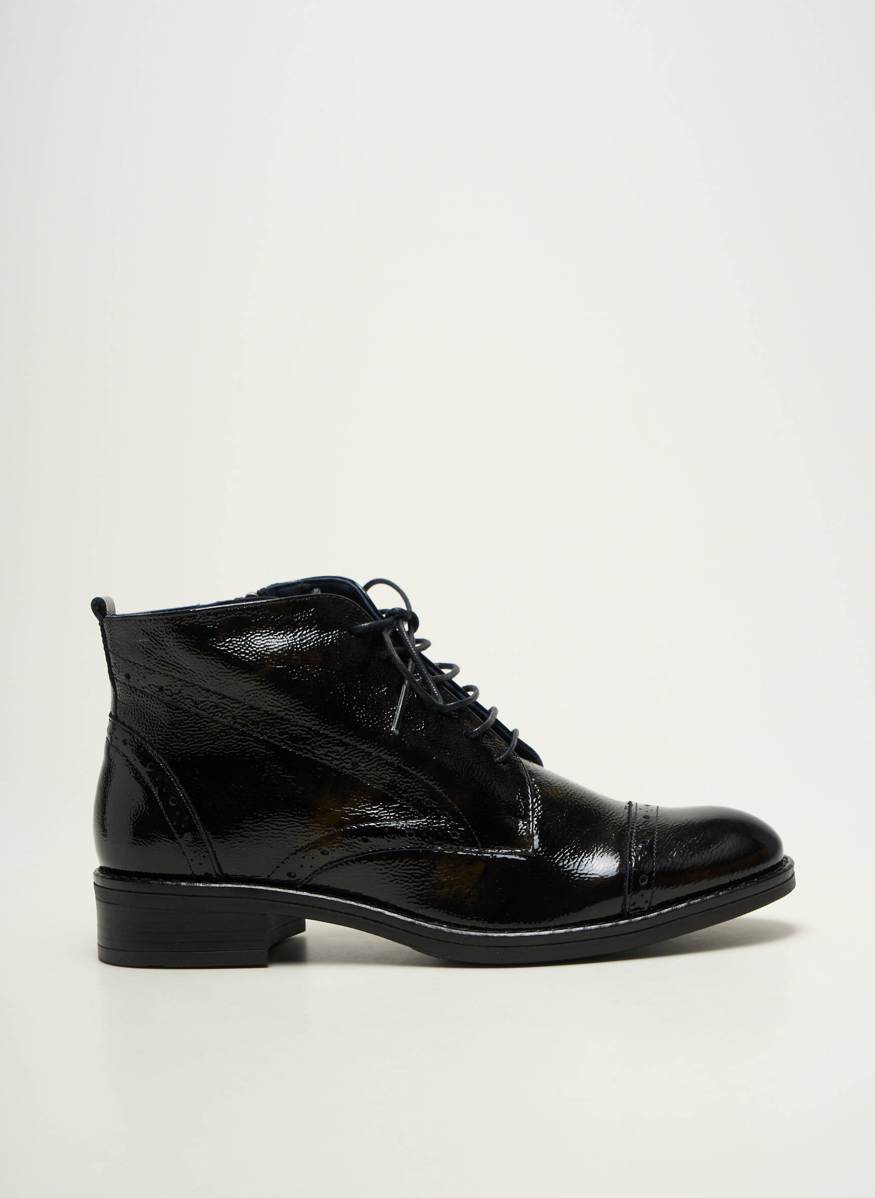 Profitez d’un véritable bon plan avec ces bottines DORKING pour femme, qui allient parfaitement élégance et petit prix. Ce modèle en cuir verni noir séduit par sa ligne raffinée, ses détails soignés et sa finition brillante qui apportent une touche chic à toutes vos tenues. Son laçage classique et sa forme légèrement montante offrent un maintien optimal tout en restant tendance, parfait pour compléter un look urbain sans se ruiner.