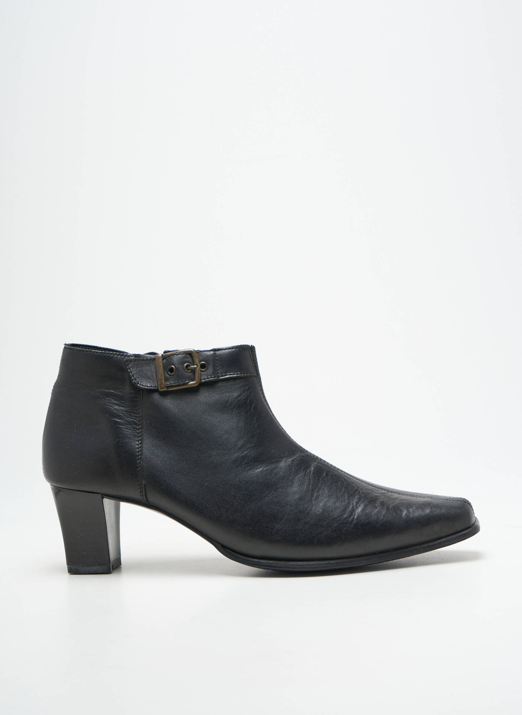 Profitez d’un véritable bon plan avec ces bottines de la marque DORNDORF, parfaites pour sublimer votre garde-robe sans vous ruiner. Leur cuir noir élégant, rehaussé d’une petite boucle métallique discrète sur le côté, s’accorde facilement avec tous vos looks du quotidien. Leur talon stable assure confort et féminité à petit prix, pour une allure chic en toute simplicité.