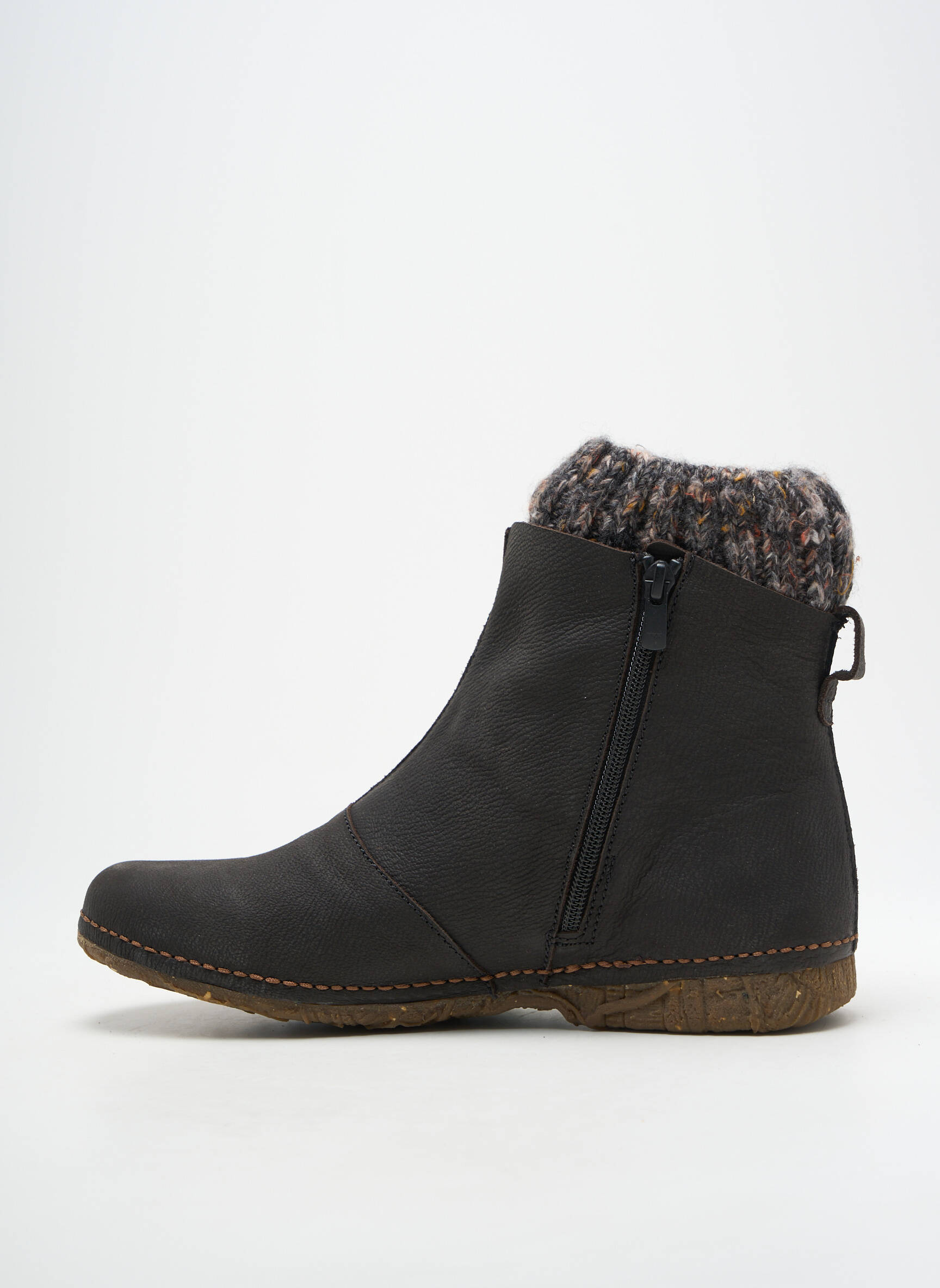 Profitez d'une vraie affaire avec ces bottines EL NATURALISTA pour femme qui allient confort et style à prix réduit. Leur empeigne en cuir aspect mat s’accompagne d’une semelle épaisse et texturée pour un look à la fois naturel et moderne, tandis que la finition tricotée sur la cheville leur apporte une touche cosy idéale pour l’hiver. Un choix parfait et économique pour réchauffer vos tenues sans vous ruiner.