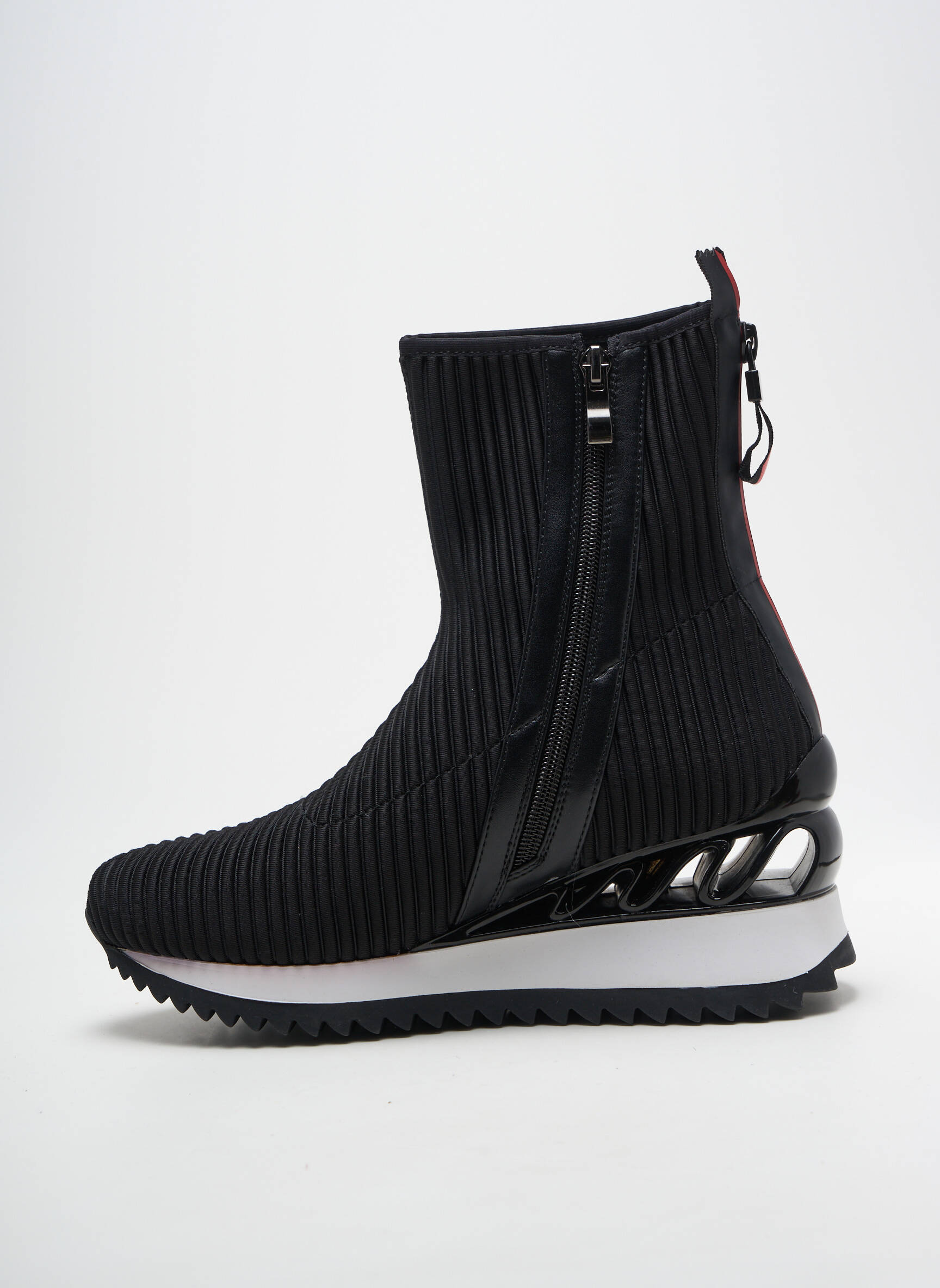 Profitez d’une véritable affaire avec ces bottines EXÉ pour femme, au design avant-gardiste et à la semelle futuriste ajourée qui attire tous les regards. La tige en matière côtelée apporte une touche moderne et élégante, tandis que la fermeture zippée à l’arrière assure un enfilage rapide. Ces boots vous permettent d’afficher un style unique à prix réduit, parfaites pour celles qui cherchent à allier confort quotidien et originalité sans se ruiner.