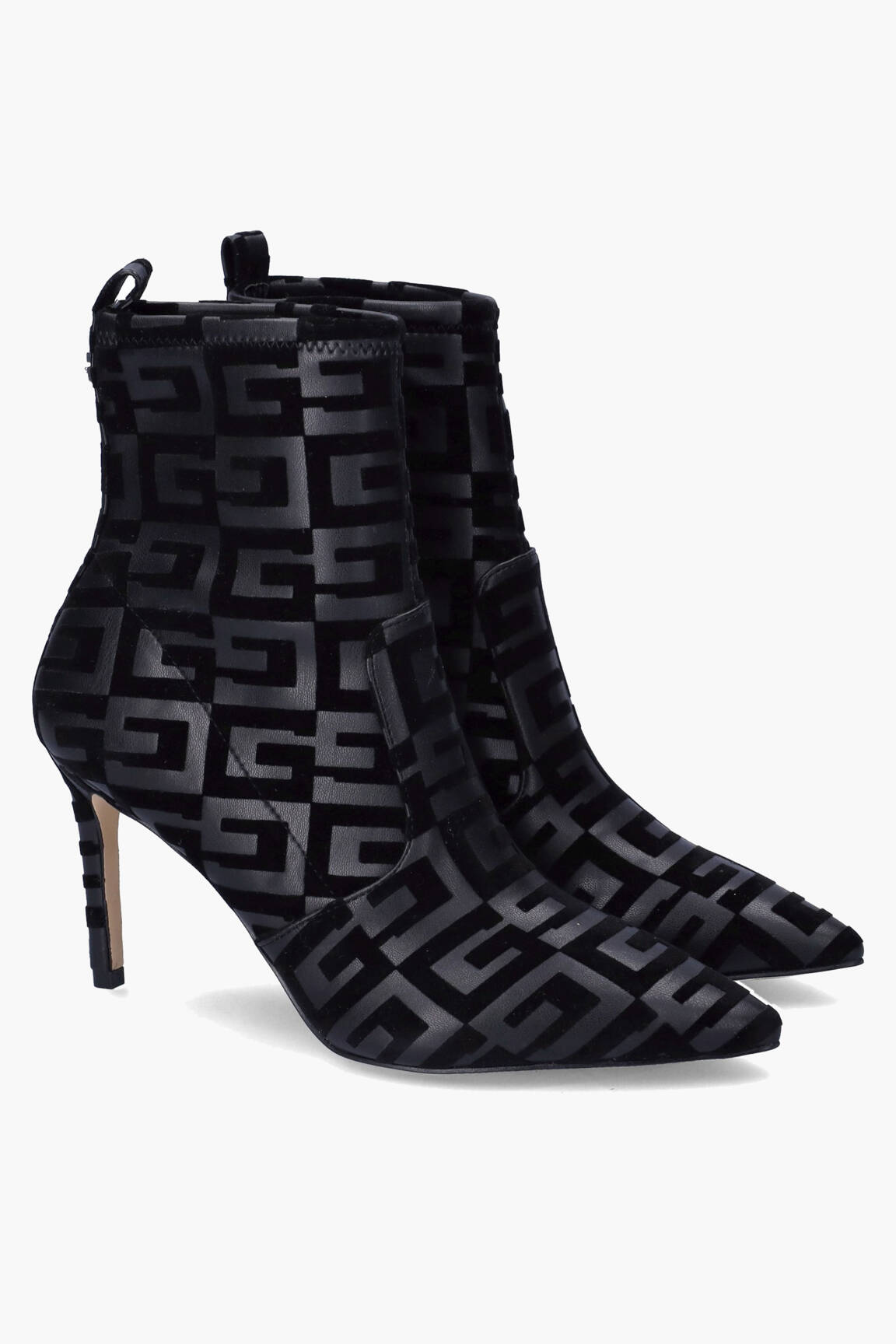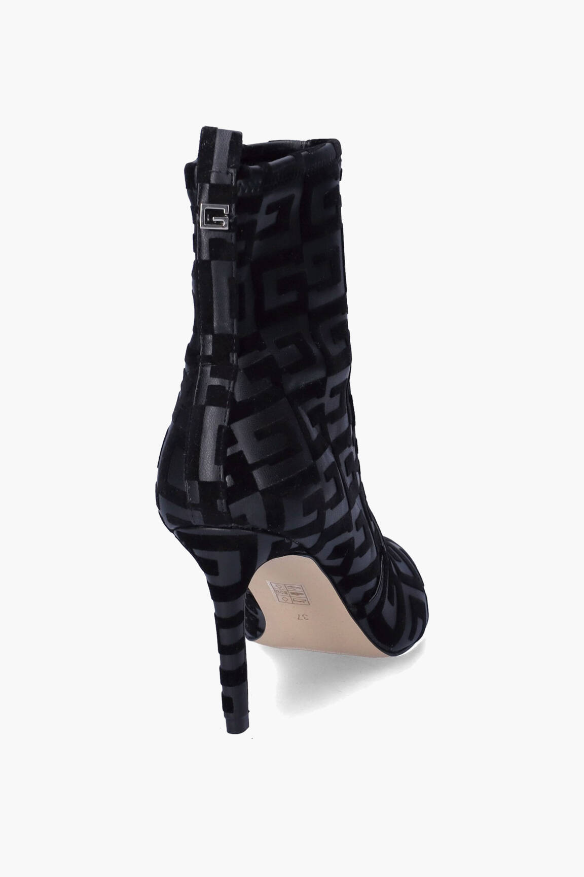 Profitez d'une paire d'exception à prix mini avec ces bottines GUESS, idéales pour apporter une touche tendance à toutes vos tenues sans vous ruiner. Leur motif graphique oversize signature, leur finition effet velours et leur talon aiguille élégant créent un look féminin et sophistiqué, parfait pour valoriser votre style au quotidien tout en réalisant une vraie bonne affaire.