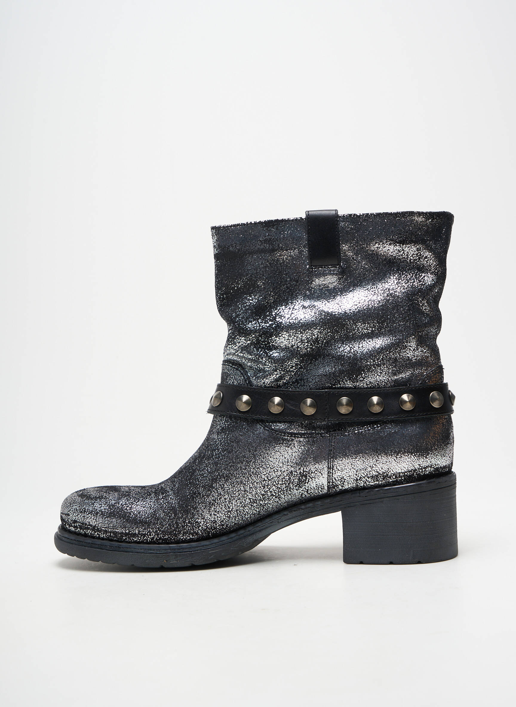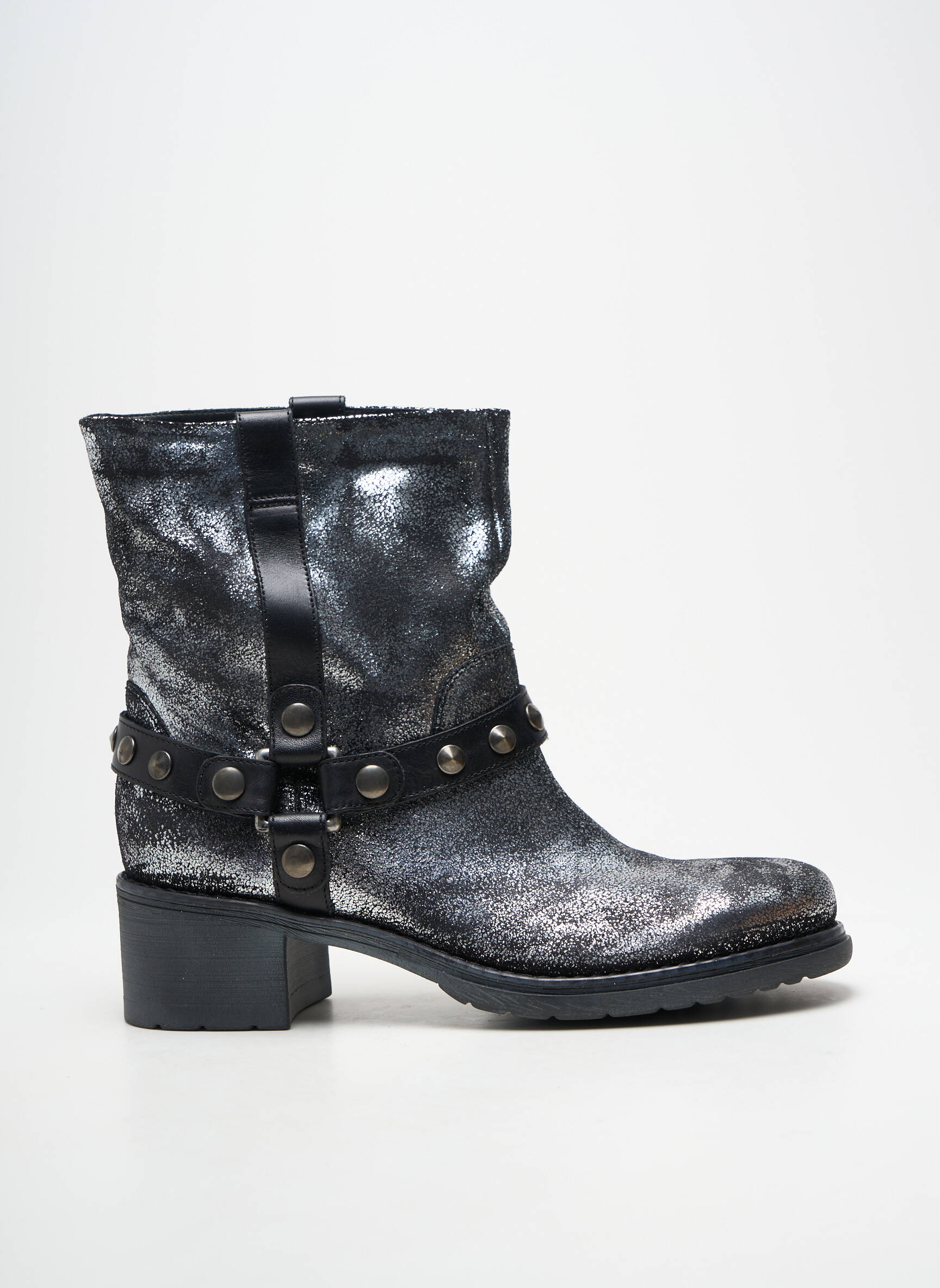 Profitez d’un vrai bon plan avec ces bottines JANET SPORT pour femme, au style rock et tendance grâce à leur effet métallisé qui capte la lumière à chaque pas. Les détails de la lanière décorative ornée de rivets apportent une touche affirmée, tandis que leur talon carré assure confort et stabilité au quotidien. Idéales pour dynamiser vos looks urbains sans vous ruiner, ces boots sont l’allié parfait pour allier style unique et prix malin.