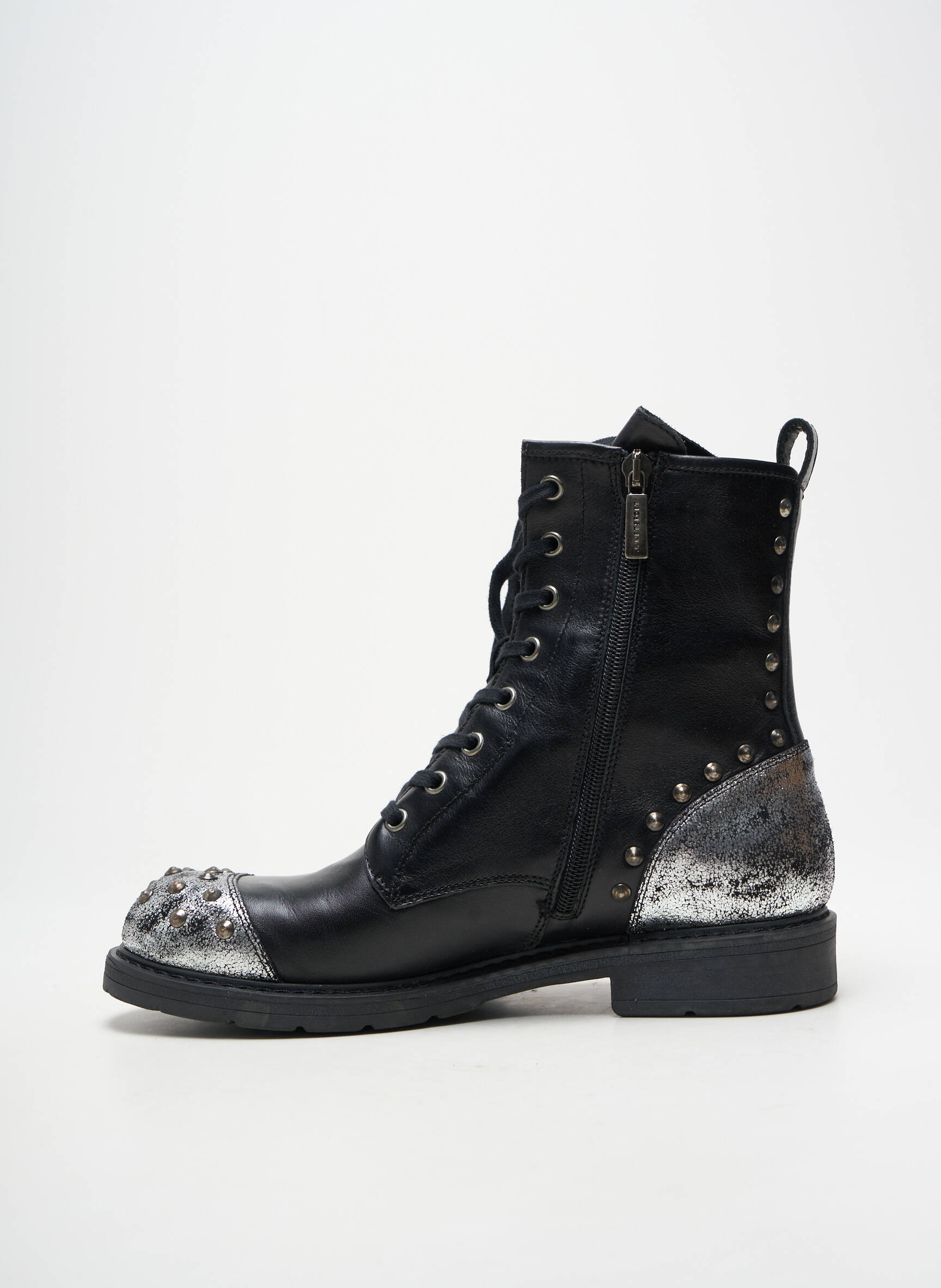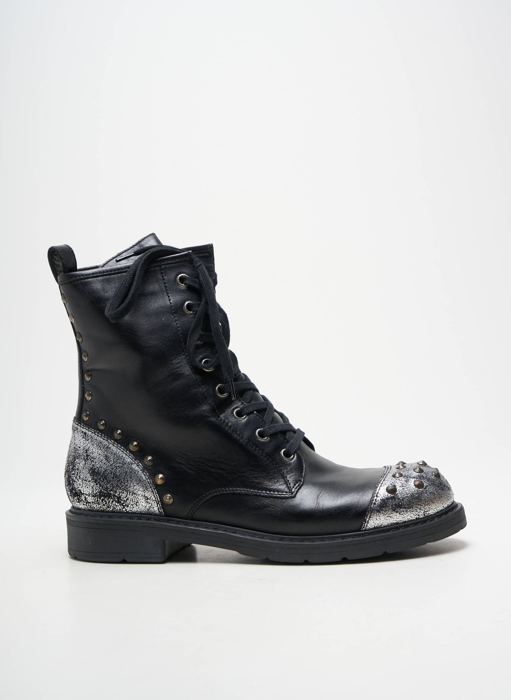 Avec ces bottines JANET SPORT pour femme, laissez-vous séduire par un style rock et tendance à prix mini. Leur cuir noir souple est sublimé par des clous métallisés et des empiècements argentés au talon et sur l’avant, pour une touche originale qui ne passe pas inaperçue. C’est l’alliance parfaite entre allure affirmée et bonne affaire à saisir sans hésiter pour donner du caractère à toutes vos tenues, sans se ruiner.
