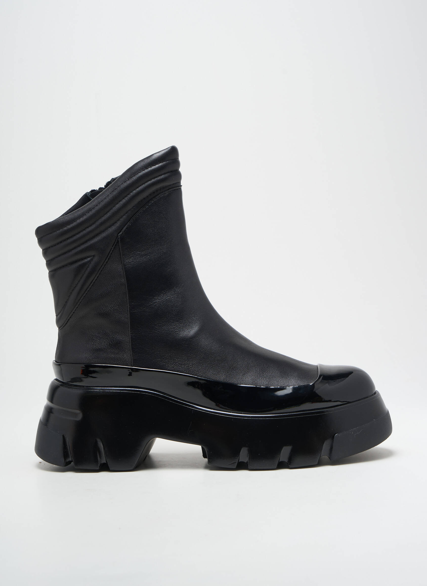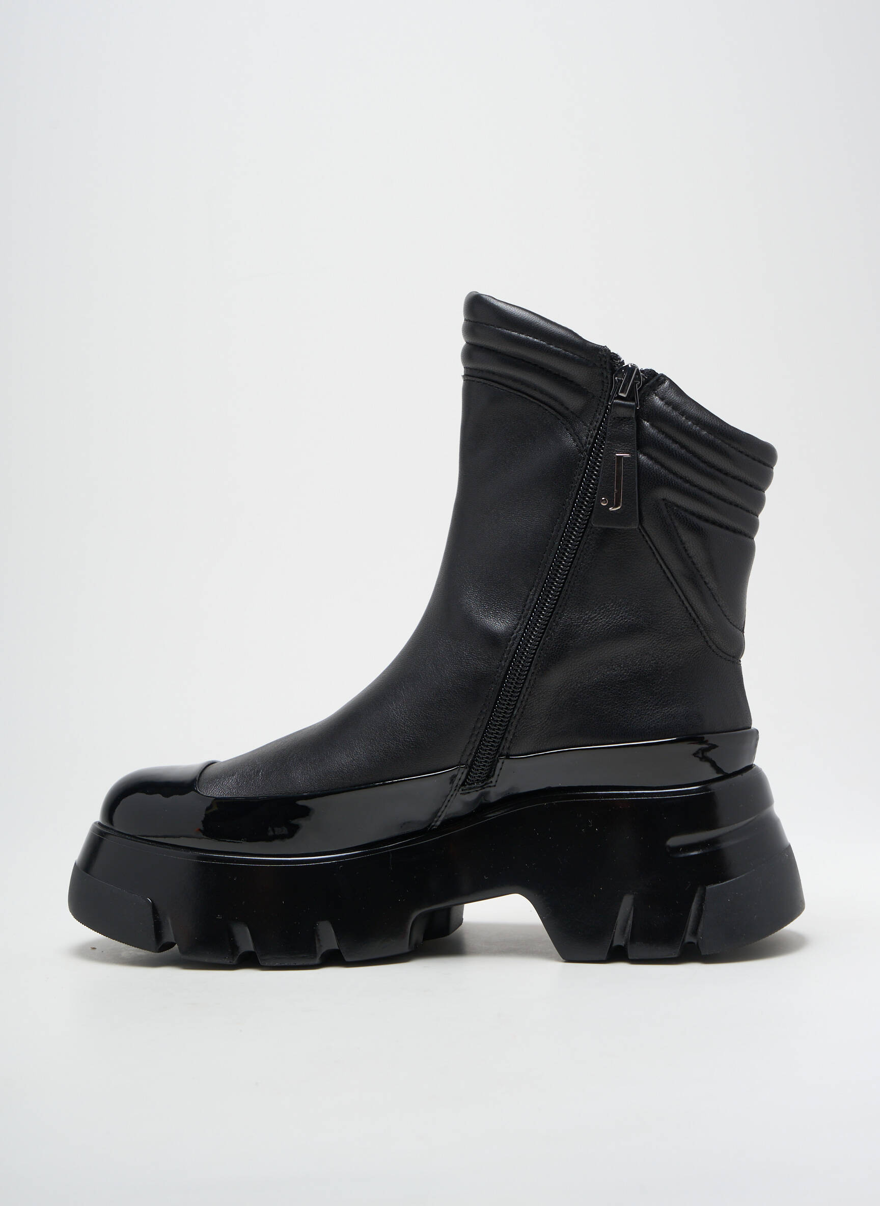 Profitez d’un véritable bon plan avec ces bottines JEANNOT pour femme qui allient modernité et audace à un prix mini, idéales pour celles qui souhaitent donner une touche ultra-contemporaine à leurs tenues tout en maîtrisant leur budget. Son cuir noir lisse est sublimé par des empiècements brillants qui attrapent la lumière, tandis que la semelle épaisse crantée assure à la fois confort et style affirmé au quotidien. Ce modèle tendance et urbain offre une allure résolument unique, parfait pour dynamiser vos looks sans vous ruiner.