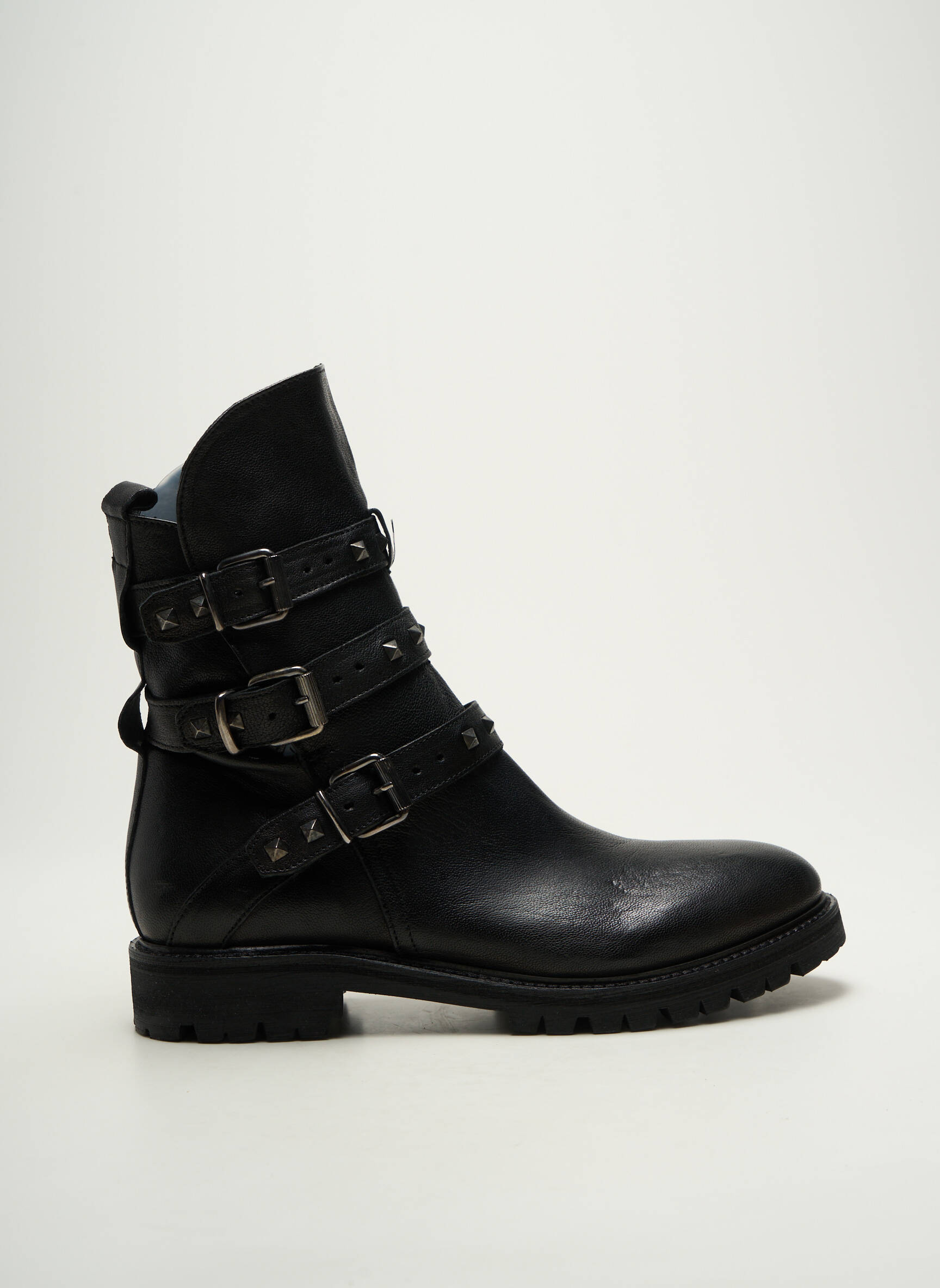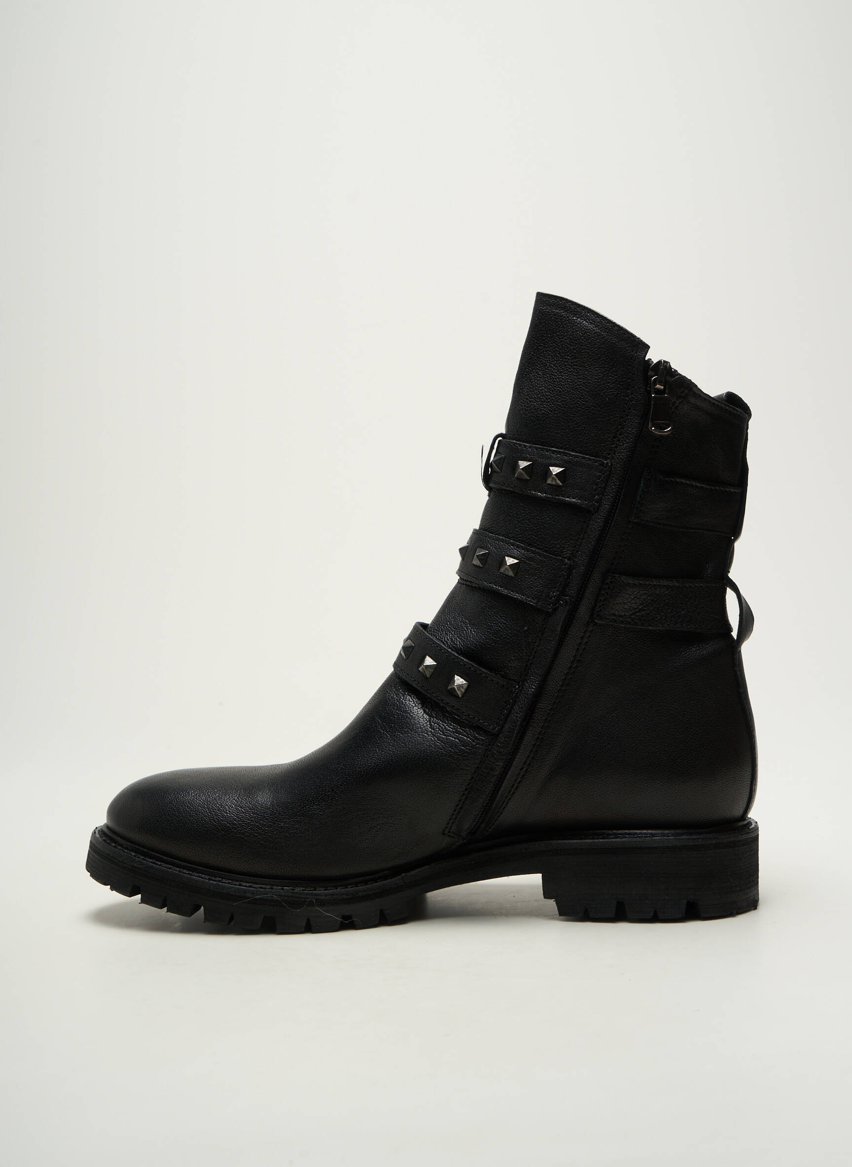 Voici une occasion à ne pas manquer pour afficher un look tendance sans vous ruiner grâce à ces bottines KEB pour femme, au style rock affirmé avec leurs trois brides à boucles métalliques et leurs petits clous ton sur ton qui ajoutent une touche rebelle et moderne à toutes vos tenues. Idéales pour allier confort et caractère tout en profitant d'un prix mini, elles deviendront vite vos alliées du quotidien, parfaites pour faire sensation à petit prix.