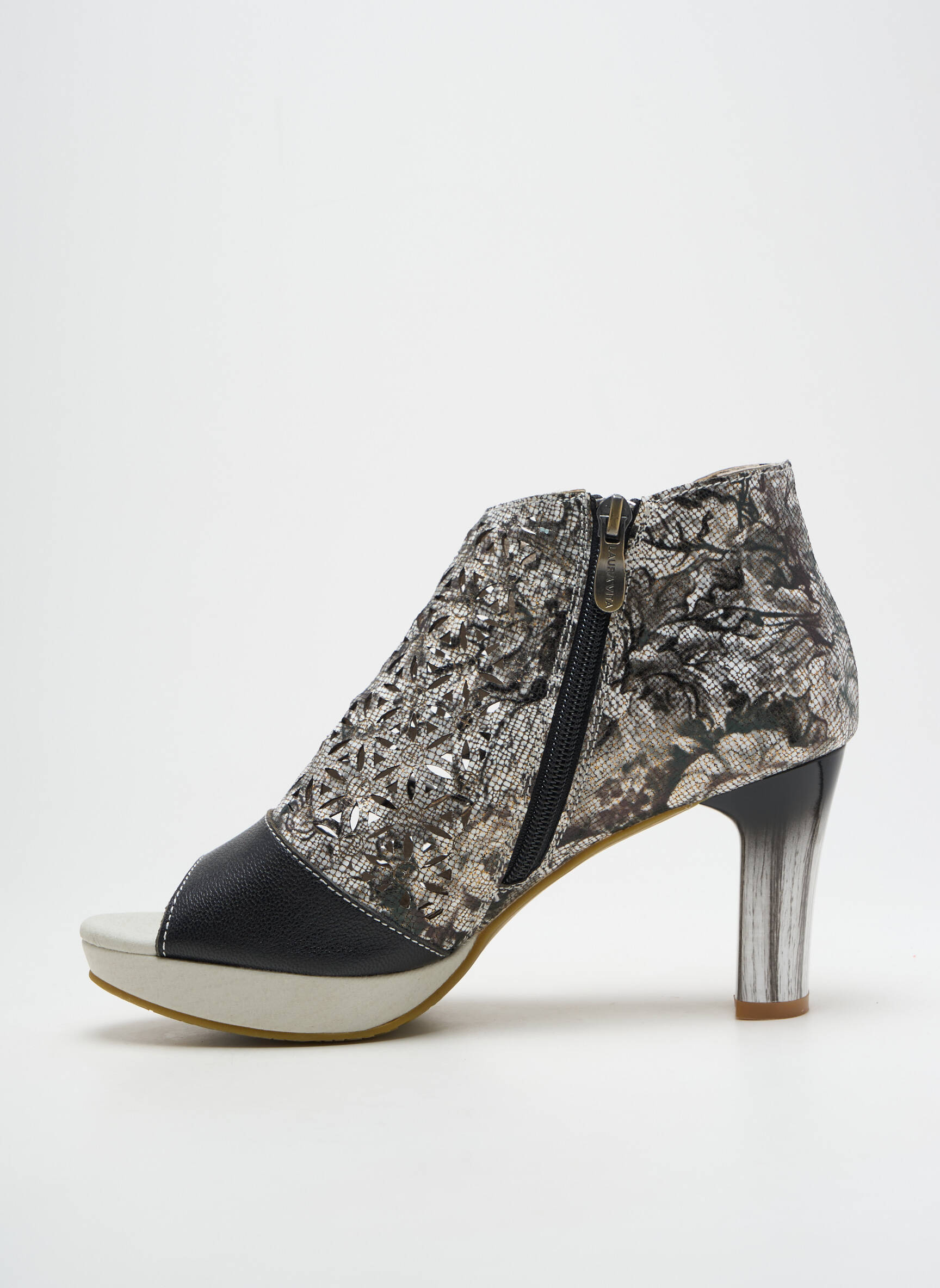 Craquez pour ces bottines Laura Vita à prix mini, une occasion unique de vous offrir une pièce originale sans vous ruiner. Leur design graphique et audacieux, relevé par un jeu de motifs effet python et des boucles décoratives sur le côté, apporte une touche mode incontestable à toutes vos tenues. Le talon élégant affine la silhouette tout en restant confortable pour une allure assurément féminine et moderne. Ce modèle est parfait pour celles qui aiment se démarquer et profiter de bonnes affaires sur des chaussures de marque.