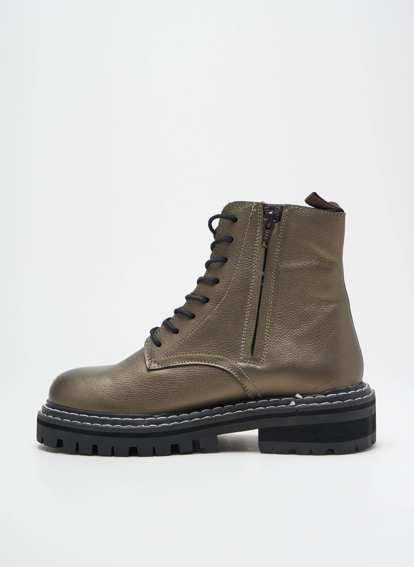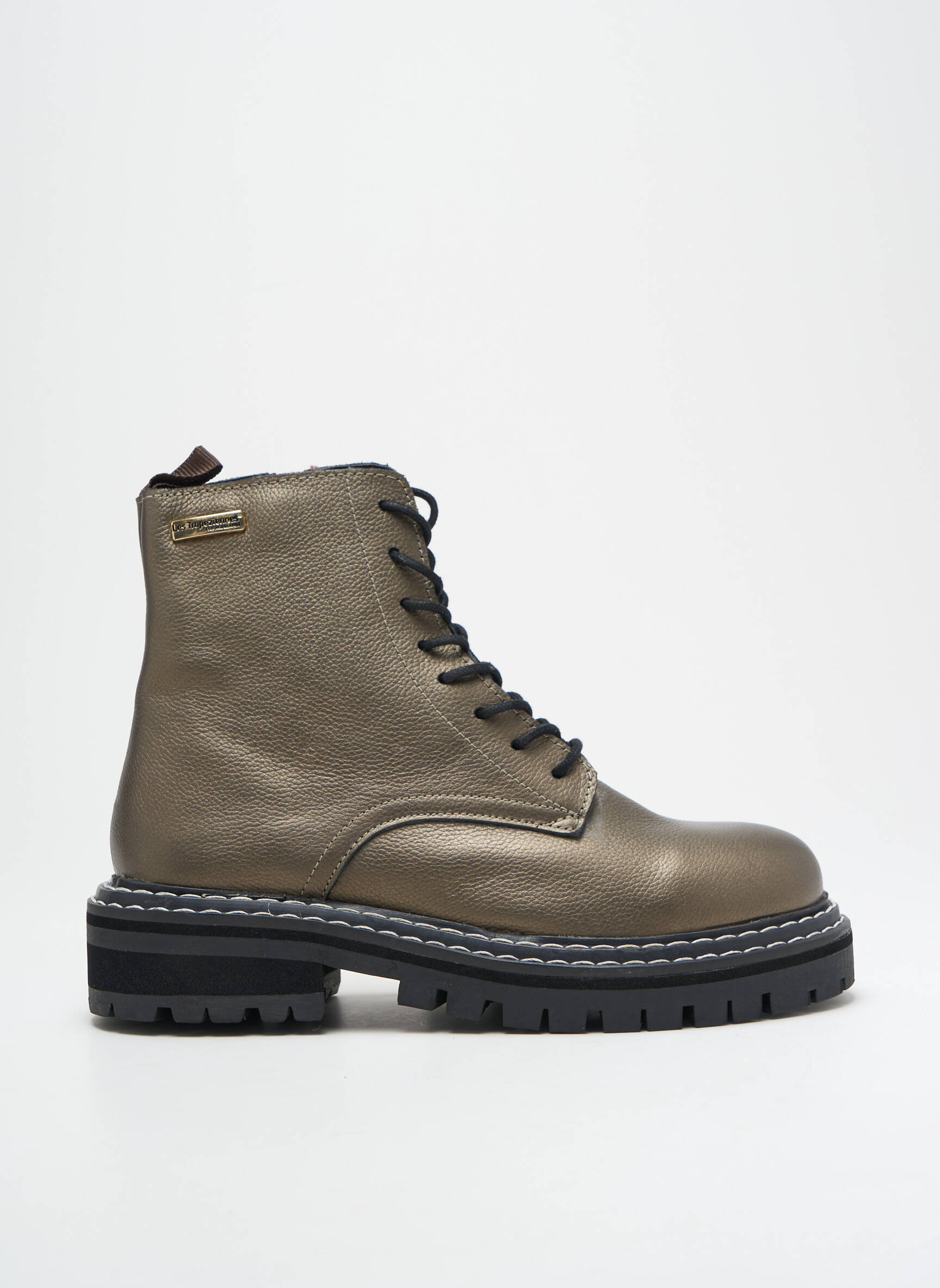 Profitez d’une opportunité à prix mini avec ces bottines LES TROPEZIENNES PAR M.BELARBI, qui allient style et robustesse dans un esprit combat boot pile dans la tendance. Leur cuir au fini métallisé bronze donne une touche originale et urbaine, tandis que la semelle épaisse crantée assure confort et adhérence au quotidien. Ces boots, à la fois actuelles et passe-partout, sont parfaites pour sublimer vos looks tout en réalisant de belles économies.