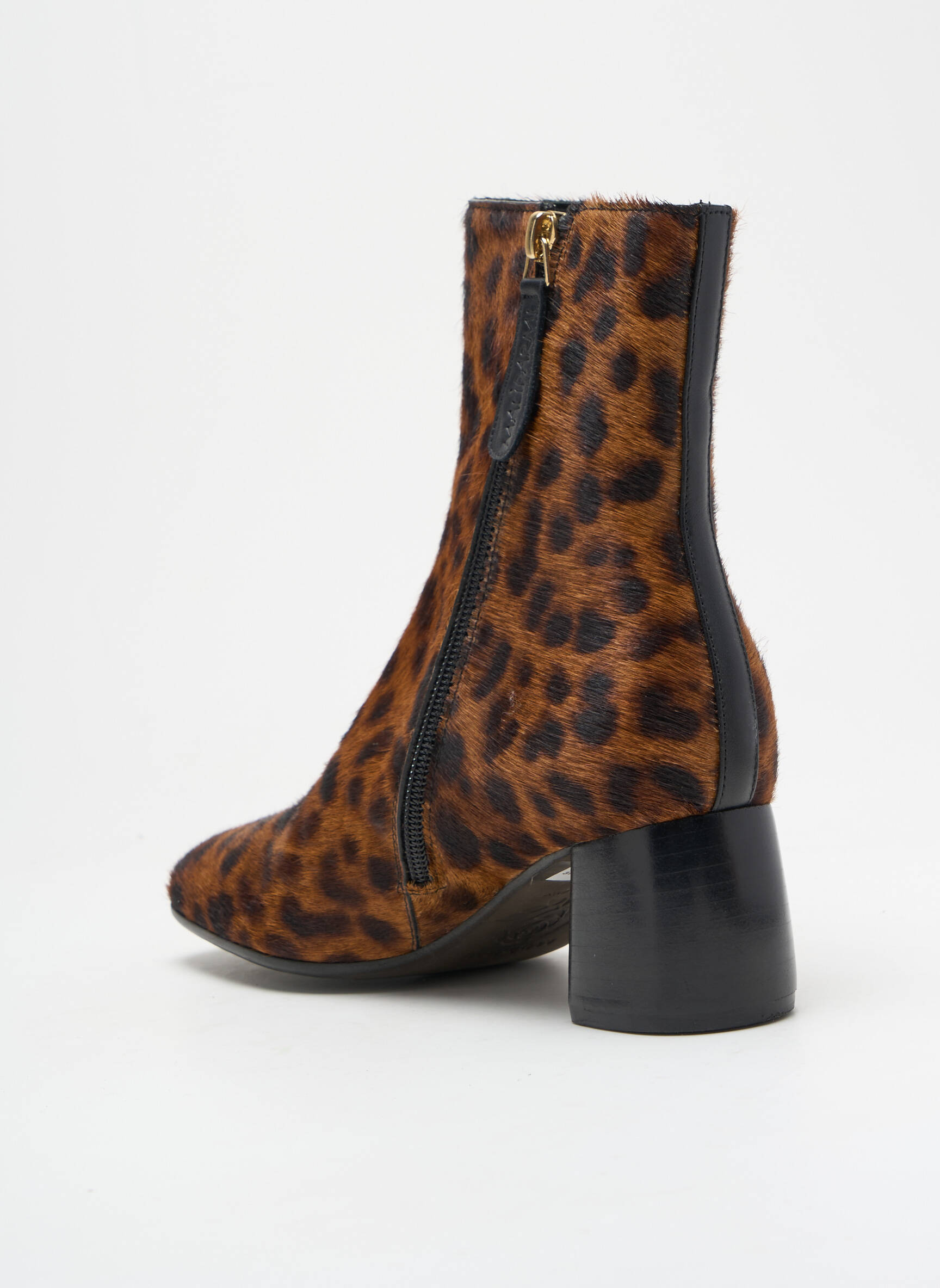 Quand l'audace fait rimer élégance et caractère, ces bottines MALIPARMI pour femme incarnent une sophistication sauvage avec leur imprimé léopard sophistiqué qui recouvre entièrement une tige en matière effet poil offrant un aspect luxueux et texturé, tandis que la silhouette épurée à bout carré s'appuie sur un talon carré moyen enrobé de cuir lisse noir, assurant une allure contemporaine et confortable pour marquer chaque pas d'assurance.