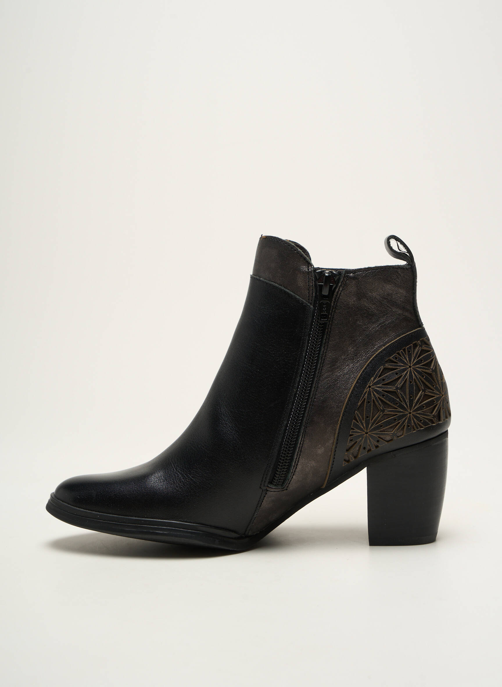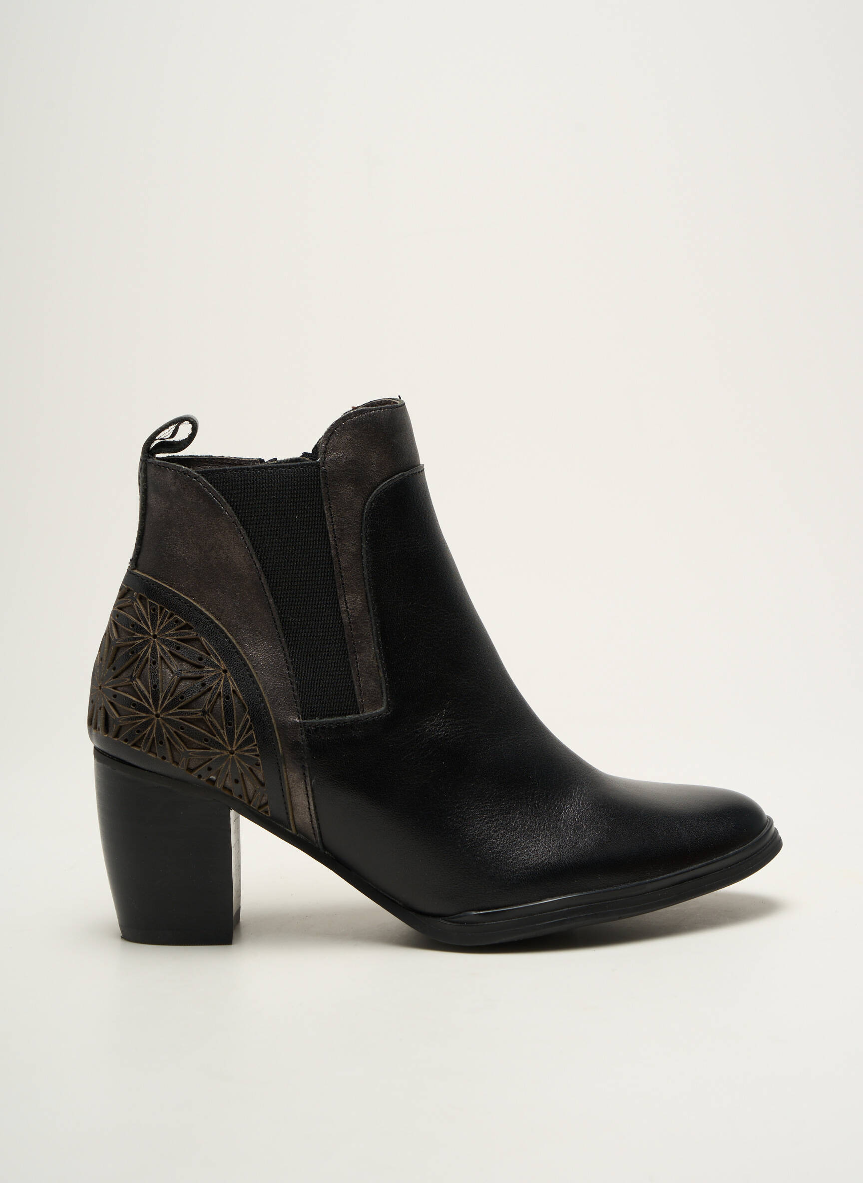 Profitez d'un excellent rapport qualité-prix avec ces bottines MAM'ZELLE pour femme qui allient avec brio élégance et originalité?; leur design moderne se distingue par un mélange de matières raffinées et un motif géométrique délicatement travaillé sur le talon, pour un look tendance sans vous ruiner. Idéales au quotidien comme en soirée, ces boots sont une occasion à saisir pour renouveler votre style à petit prix.