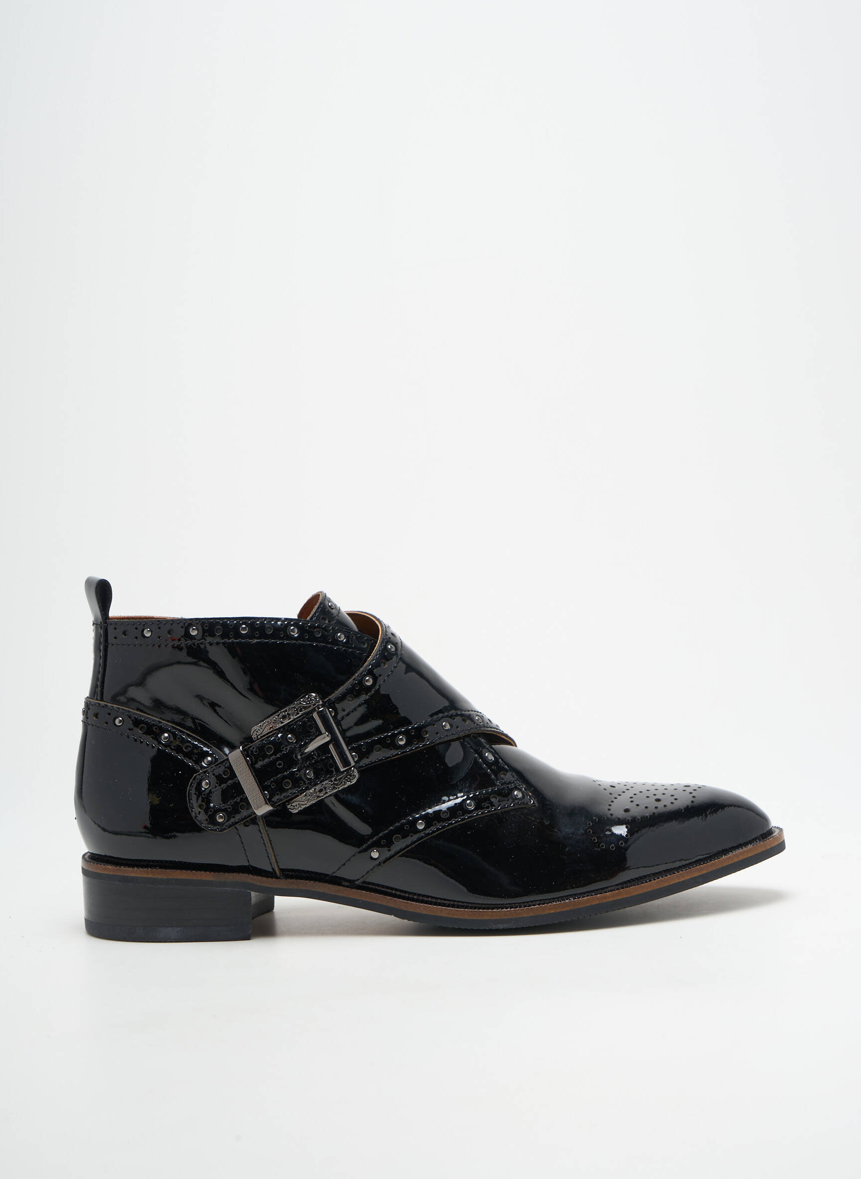 Craquez pour ces boots MAM'ZELLE au style résolument moderne, proposées à prix mini pour un look chic sans vous ruiner. Leur finition vernie noire apporte une touche élégante et brillante, tandis que le détail perforé à l’avant et la boucle métallique latérale ajoutent juste ce qu’il faut d’originalité. Profitez d’un vrai bon plan pour donner du caractère à toutes vos tenues, sans faire de compromis sur la qualité ni sur votre budget.
