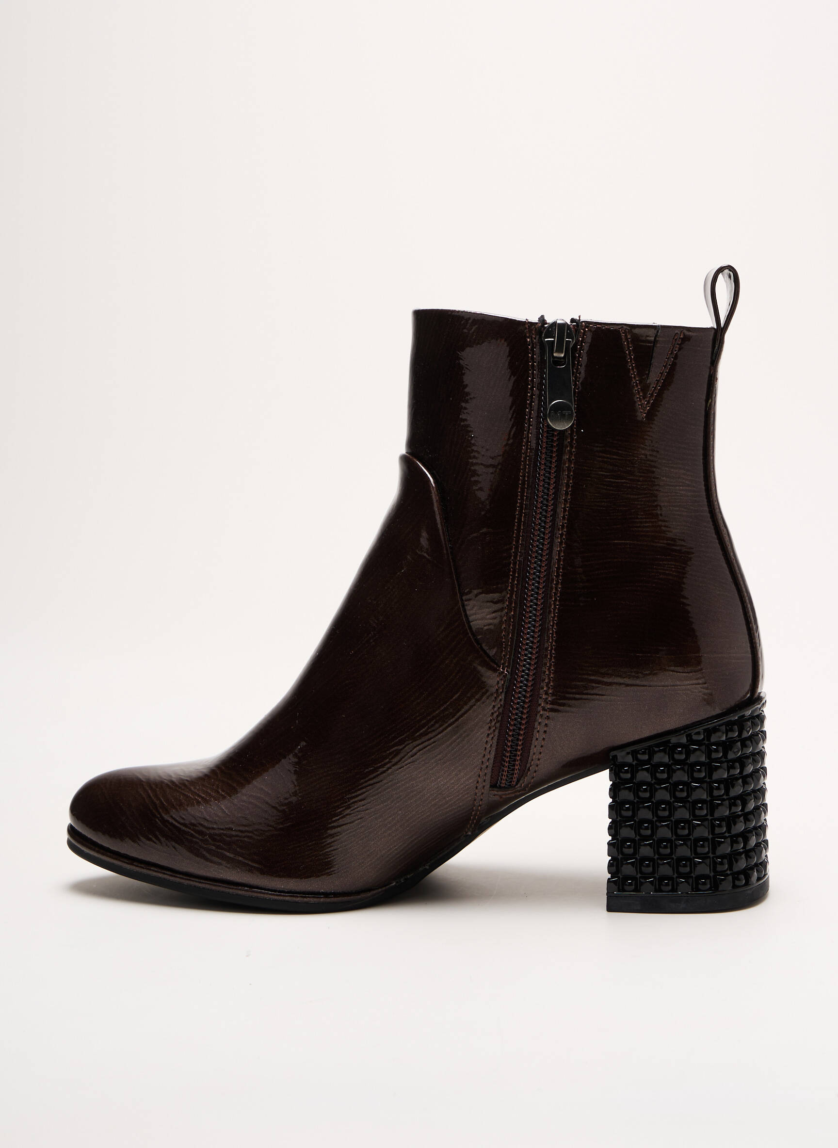 Quand la sophistication rencontre un détail audacieux, ces bottines MARCO TOZZI pour femme captivent instantanément le regard avec leur cuir brillant marron profond qui épouse délicatement la cheville, tandis que leur talon carré orné d’une texture géométrique noire apporte une touche contemporaine et sculpturale à l’ensemble.