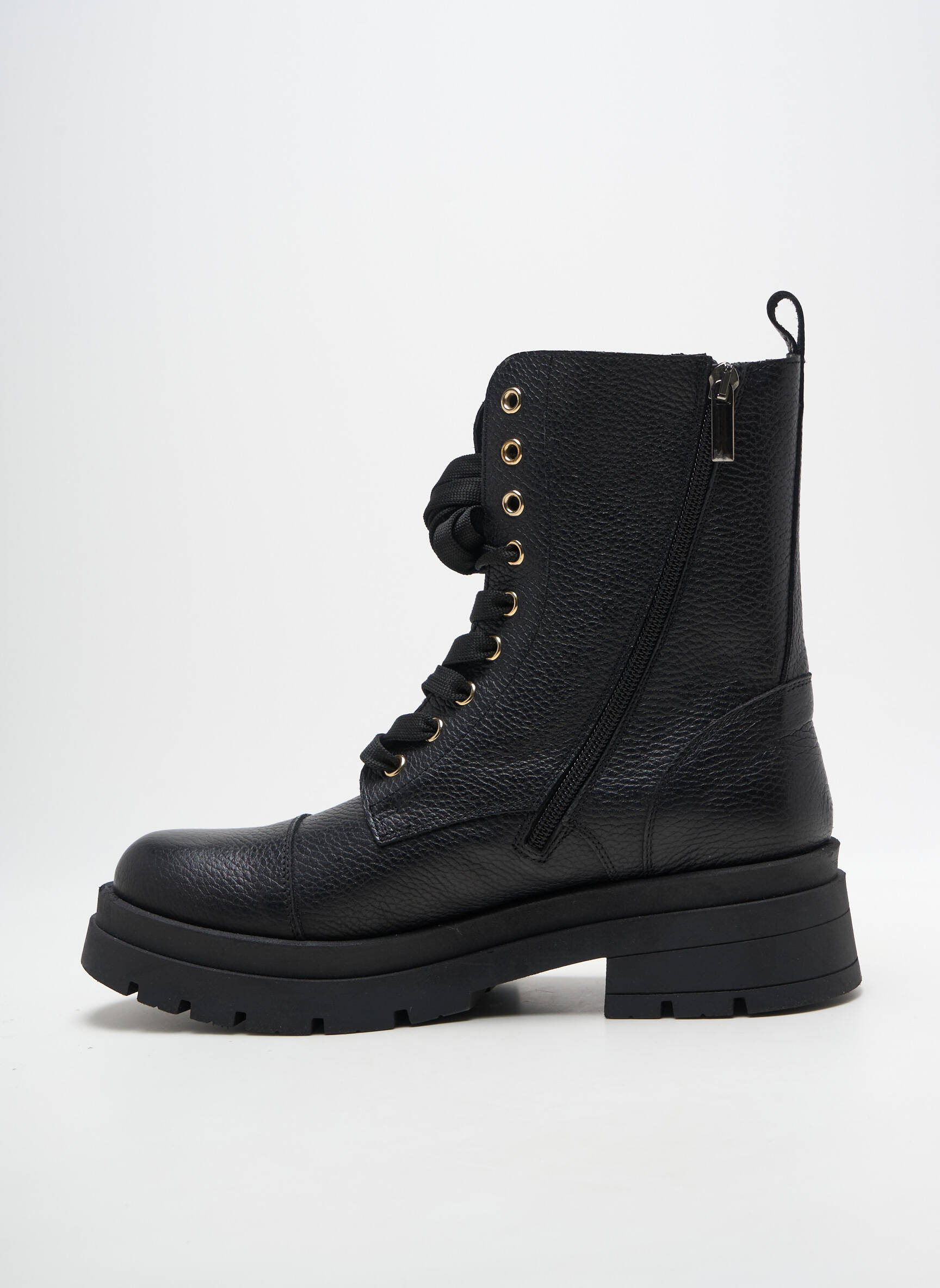 Profitez d'une véritable aubaine avec ces boots MELINE pour femme, à la fois tendance et accessibles, qui revisitent le style combat avec leur cuir noir grainé et leur semelle crantée. Leur ligne urbaine et les œillets dorés apportent une touche de caractère qui assure confort et modernité au quotidien, le tout à prix mini pour vous faire plaisir sans compromis.