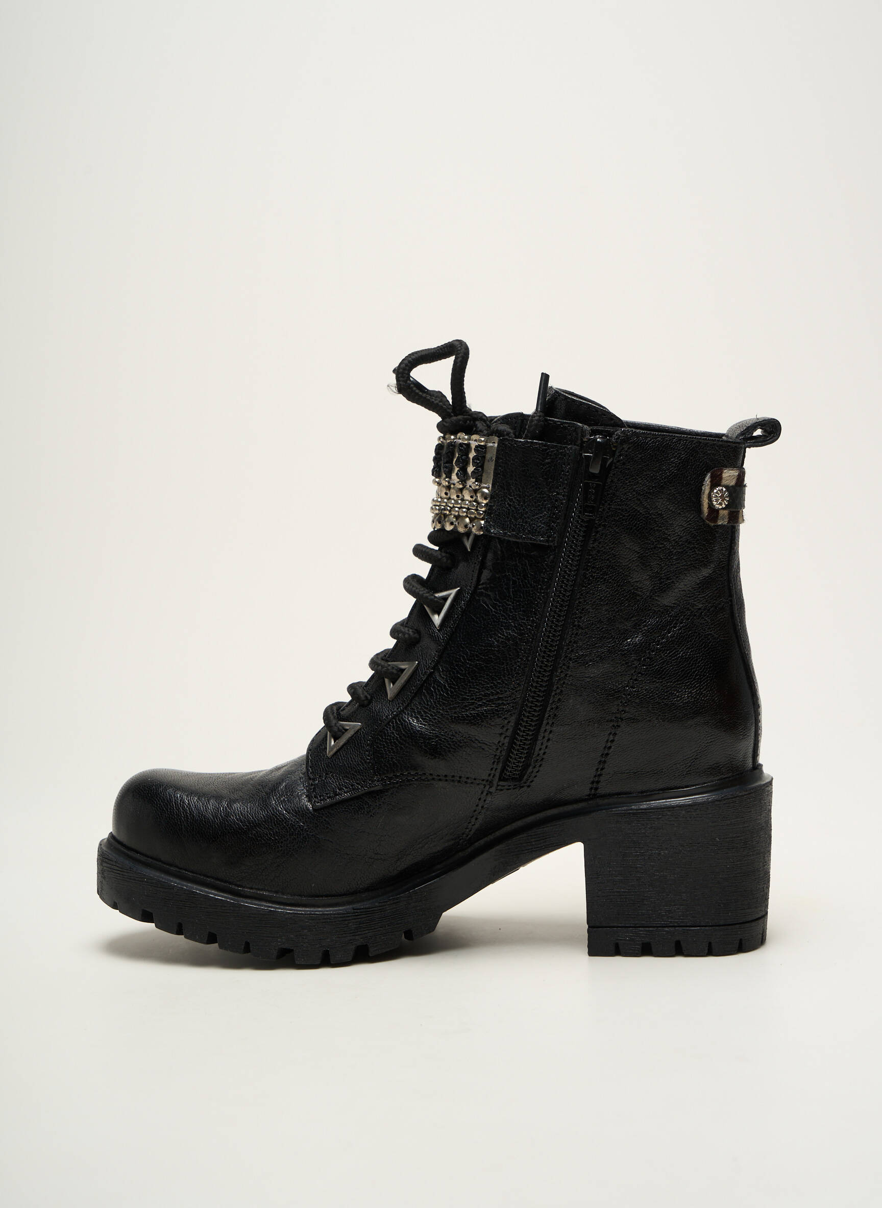 Craquez pour ces boots METAMORF'OSE à prix mini et donnez du caractère à votre look grâce à leur design unique, rehaussé de chaînes et détails métalliques qui apportent une touche rock ultra-tendance. Avec leur semelle crantée et leur talon épais, elles offrent confort et style pour accompagner toutes vos journées, le tout sans vous ruiner. Saisissez l’occasion de vous offrir une pièce forte à prix doux !
