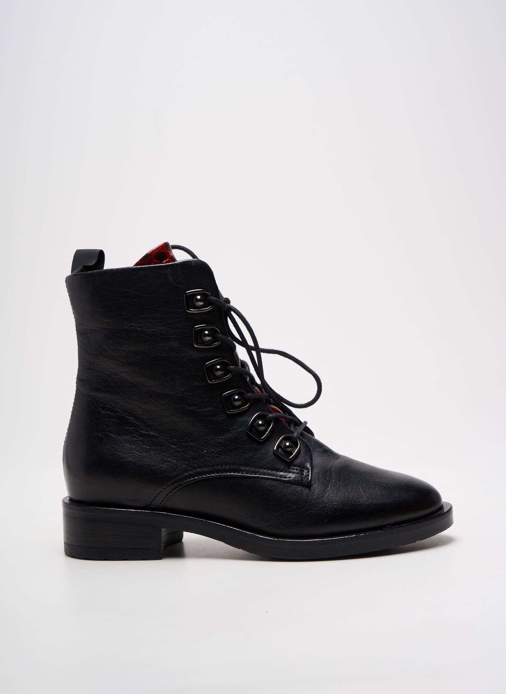 Ne manquez pas l’occasion de vous offrir un look tendance à petit prix avec ces bottines METAMORF'OSE pour femme, dotées d’un cuir noir souple et d’un laçage élégant rehaussé par des œillets métalliques pour une touche moderne et urbaine. Leur ligne sobre et leur semelle plate offrent confort et style pour accompagner toutes vos tenues en faisant de vraies économies, parfaites pour celles qui cherchent la bonne affaire sans compromis sur la qualité.